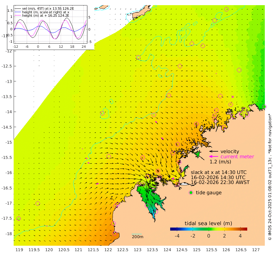 6cm/s 59T +10cm/s rms + 1cm/s 1T. NWSBRW 205m 10cm/s 90T +11cm/s rms + 6cm/s -110T. NWSROW 199m 38cm/s 138T +5cm/s rms + 2cm/s 65T. CAM050 58m 27cm/s 126T +12cm/s rms + 5cm/s 92T. CAM100 99m 7cm/s 82T +7cm/s rms + 1cm/s -85T. KIM400 396m 13cm/s 93T +9cm/s rms + 5cm/s -119T. KIM200 208m 22cm/s 94T +11cm/s rms + 5cm/s -147T. KIM100 99m 37cm/s 67T +8cm/s rms + 3cm/s -103T. KIM050 59m 4cm/s -21T +4cm/s rms + 2cm/s 23T. TIMORS88 91m 84cm Imperieuse Reef 126cm Mermaid Reef 275cm Broome 216cm Cape Baskerville 232cm Red Bluff 218cm Cape Boileau 120cm Scott Reef (WA) 139cm Ashmore Reef 197cm Karrakatta Bay 151cm Sunday Island -7cm Valentine Island -108cm Derby 2cm Port Usborne 214cm Bedford Islands 260cm Yampi Sound (Koolan Island) 318cm Macleay Island 230cm Adele Island 165cm Browse Island 282cm Shale Island 270cm Lizard Island 336cm Hall Point 253cm Degerando Island 249cm White Island 153cm Skua No. 4 Well 125cm Jabiru 241cm Maret Island 222cm Baudin Island 217cm Cape Voltaire (Krait Bay) 111cm Dillon Shoal 93cm Laminaria 233cm Port Warrender 169cm Troughton Island 220cm Cassini Island 170cm West Holothuria Reef Offshore 152cm Jar Island 155cm Lynher Bank 194cm Heywood Shoal 135cm Pee Shoal 107cm Van Cloon Shoal 116cm Carronade Island 120cm Guy Point 126cm Napier Broome Bay 36cm Lesueur Island