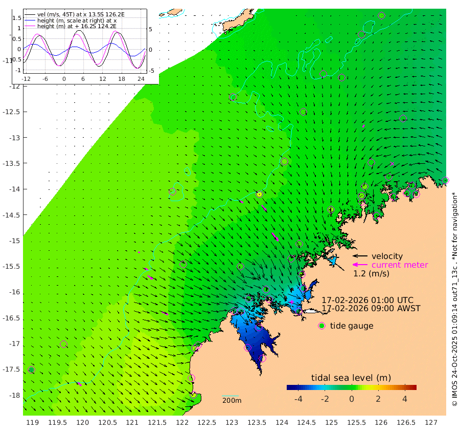 27cm/s 124T +10cm/s rms + 1cm/s 1T. NWSBRW 205m 38cm/s 139T +11cm/s rms + 6cm/s -110T. NWSROW 199m 84cm/s 143T +5cm/s rms + 2cm/s 65T. CAM050 58m 60cm/s 142T +12cm/s rms + 5cm/s 92T. CAM100 99m 14cm/s 120T +7cm/s rms + 1cm/s -85T. KIM400 396m 29cm/s 122T +9cm/s rms + 5cm/s -119T. KIM200 208m 52cm/s 128T +11cm/s rms + 5cm/s -147T. KIM100 99m 56cm/s 113T +8cm/s rms + 3cm/s -103T. KIM050 59m 22cm/s -146T +4cm/s rms + 2cm/s 23T. TIMORS88 91m -64cm Imperieuse Reef 51cm Mermaid Reef 95cm Broome 70cm Cape Baskerville 13cm Red Bluff 52cm Cape Boileau 46cm Scott Reef (WA) 20cm Ashmore Reef -78cm Karrakatta Bay -118cm Sunday Island -333cm Valentine Island -369cm Derby -272cm Port Usborne -37cm Bedford Islands -34cm Yampi Sound (Koolan Island) 21cm Macleay Island 35cm Adele Island 124cm Browse Island -85cm Shale Island -105cm Lizard Island 52cm Hall Point 11cm Degerando Island 36cm White Island 36cm Skua No. 4 Well 20cm Jabiru 64cm Maret Island 55cm Baudin Island 44cm Cape Voltaire (Krait Bay) -17cm Dillon Shoal 37cm Laminaria 4cm Port Warrender -4cm Troughton Island 49cm Cassini Island 25cm West Holothuria Reef Offshore -8cm Jar Island 34cm Lynher Bank 48cm Heywood Shoal 3cm Pee Shoal -30cm Van Cloon Shoal -11cm Carronade Island -9cm Guy Point -17cm Napier Broome Bay -59cm Lesueur Island