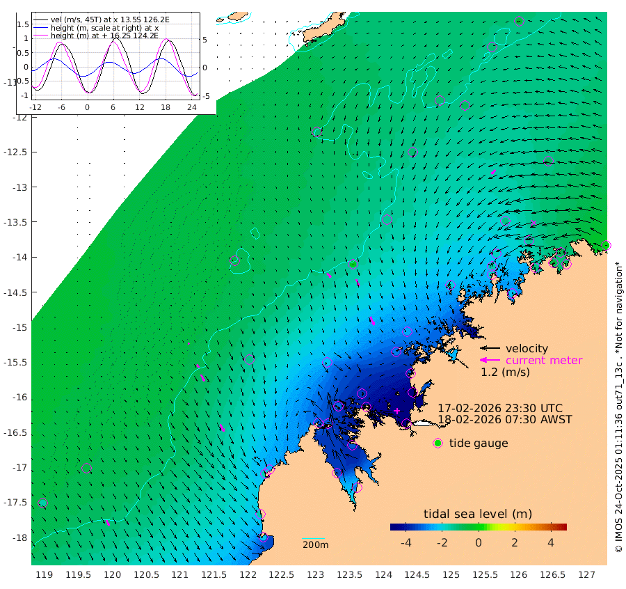 34cm/s 136T +10cm/s rms + 1cm/s 1T. NWSBRW 205m 39cm/s 151T +11cm/s rms + 6cm/s -110T. NWSROW 199m 58cm/s 155T +5cm/s rms + 2cm/s 65T. CAM050 58m 45cm/s 158T +12cm/s rms + 5cm/s 92T. CAM100 99m 10cm/s 154T +7cm/s rms + 1cm/s -85T. KIM400 396m 22cm/s 145T +9cm/s rms + 5cm/s -119T. KIM200 208m 44cm/s 152T +11cm/s rms + 5cm/s -147T. KIM100 99m 49cm/s 151T +8cm/s rms + 3cm/s -103T. KIM050 59m 36cm/s -133T +4cm/s rms + 2cm/s 23T. TIMORS88 91m -157cm Imperieuse Reef -74cm Mermaid Reef -213cm Broome -152cm Cape Baskerville -253cm Red Bluff -164cm Cape Boileau -69cm Scott Reef (WA) -117cm Ashmore Reef -321cm Karrakatta Bay -322cm Sunday Island -343cm Valentine Island -291cm Derby -325cm Port Usborne -309cm Bedford Islands -361cm Yampi Sound (Koolan Island) -356cm Macleay Island -224cm Adele Island -23cm Browse Island -459cm Shale Island -455cm Lizard Island -331cm Hall Point -287cm Degerando Island -244cm White Island -111cm Skua No. 4 Well -98cm Jabiru -187cm Maret Island -165cm Baudin Island -174cm Cape Voltaire (Krait Bay) -115cm Dillon Shoal -51cm Laminaria -219cm Port Warrender -136cm Troughton Island -165cm Cassini Island -126cm West Holothuria Reef Offshore -133cm Jar Island -134cm Lynher Bank -147cm Heywood Shoal -118cm Pee Shoal -100cm Van Cloon Shoal -77cm Carronade Island -73cm Guy Point -87cm Napier Broome Bay -4cm Lesueur Island