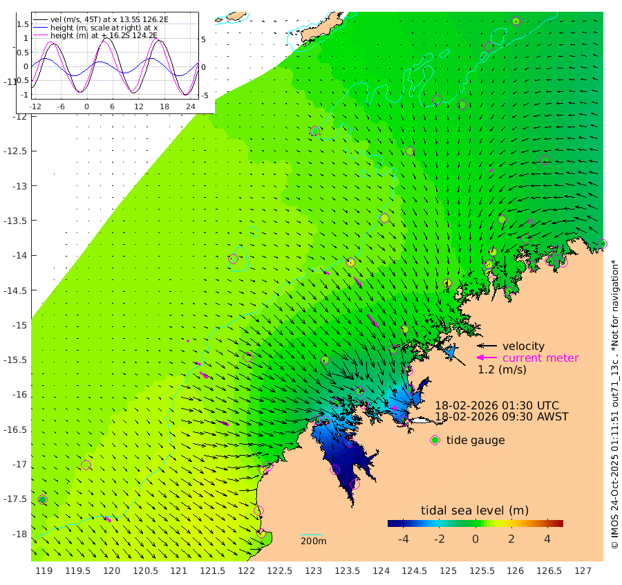 31cm/s 123T +10cm/s rms + 1cm/s 1T. NWSBRW 205m 43cm/s 138T +11cm/s rms + 6cm/s -110T. NWSROW 199m 98cm/s 142T +5cm/s rms + 2cm/s 65T. CAM050 58m 70cm/s 141T +12cm/s rms + 5cm/s 92T. CAM100 99m 15cm/s 119T +7cm/s rms + 1cm/s -85T. KIM400 396m 33cm/s 120T +9cm/s rms + 5cm/s -119T. KIM200 208m 60cm/s 126T +11cm/s rms + 5cm/s -147T. KIM100 99m 65cm/s 110T +8cm/s rms + 3cm/s -103T. KIM050 59m 25cm/s -144T +4cm/s rms + 2cm/s 23T. TIMORS88 91m -60cm Imperieuse Reef 73cm Mermaid Reef 137cm Broome 106cm Cape Baskerville 39cm Red Bluff 86cm Cape Boileau 67cm Scott Reef (WA) 39cm Ashmore Reef -72cm Karrakatta Bay -118cm Sunday Island -379cm Valentine Island -435cm Derby -313cm Port Usborne -14cm Bedford Islands -12cm Yampi Sound (Koolan Island) 43cm Macleay Island 60cm Adele Island 157cm Browse Island -71cm Shale Island -95cm Lizard Island 64cm Hall Point 43cm Degerando Island 68cm White Island 57cm Skua No. 4 Well 34cm Jabiru 99cm Maret Island 90cm Baudin Island 79cm Cape Voltaire (Krait Bay) -6cm Dillon Shoal 52cm Laminaria 41cm Port Warrender 24cm Troughton Island 83cm Cassini Island 51cm West Holothuria Reef Offshore 17cm Jar Island 59cm Lynher Bank 79cm Heywood Shoal 21cm Pee Shoal -12cm Van Cloon Shoal 14cm Carronade Island 17cm Guy Point 8cm Napier Broome Bay -36cm Lesueur Island
