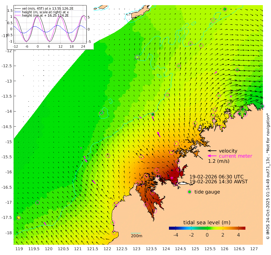 34cm/s -50T +10cm/s rms + 1cm/s 1T. NWSBRW 205m 46cm/s -35T +11cm/s rms + 6cm/s -110T. NWSROW 199m 81cm/s -29T +5cm/s rms + 2cm/s 65T. CAM050 58m 61cm/s -28T +12cm/s rms + 5cm/s 92T. CAM100 99m 13cm/s -39T +7cm/s rms + 1cm/s -85T. KIM400 396m 28cm/s -41T +9cm/s rms + 5cm/s -119T. KIM200 208m 55cm/s -35T +11cm/s rms + 5cm/s -147T. KIM100 99m 60cm/s -42T +8cm/s rms + 3cm/s -103T. KIM050 59m 39cm/s 50T +4cm/s rms + 2cm/s 23T. TIMORS88 91m 136cm Imperieuse Reef 25cm Mermaid Reef 134cm Broome 85cm Cape Baskerville 184cm Red Bluff 80cm Cape Boileau 19cm Scott Reef (WA) 68cm Ashmore Reef 298cm Karrakatta Bay 307cm Sunday Island 396cm Valentine Island 379cm Derby 382cm Port Usborne 274cm Bedford Islands 315cm Yampi Sound (Koolan Island) 301cm Macleay Island 166cm Adele Island -40cm Browse Island 428cm Shale Island 393cm Lizard Island 276cm Hall Point 224cm Degerando Island 177cm White Island 53cm Skua No. 4 Well 61cm Jabiru 111cm Maret Island 103cm Baudin Island 97cm Cape Voltaire (Krait Bay) 70cm Dillon Shoal 7cm Laminaria 132cm Port Warrender 70cm Troughton Island 90cm Cassini Island 60cm West Holothuria Reef Offshore 72cm Jar Island 81cm Lynher Bank 66cm Heywood Shoal 62cm Pee Shoal 43cm Van Cloon Shoal 8cm Carronade Island -2cm Guy Point 5cm Napier Broome Bay -46cm Lesueur Island