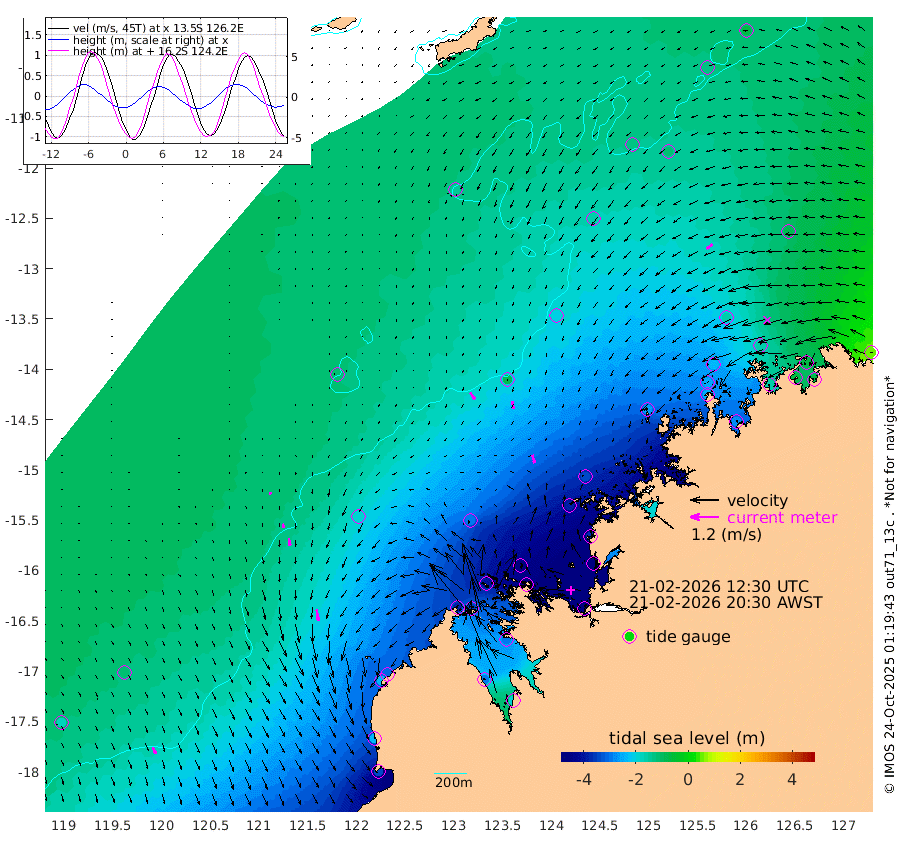 34cm/s 144T +10cm/s rms + 1cm/s 1T. NWSBRW 205m 30cm/s 157T +11cm/s rms + 6cm/s -110T. NWSROW 199m 36cm/s 164T +5cm/s rms + 2cm/s 65T. CAM050 58m 34cm/s 169T +12cm/s rms + 5cm/s 92T. CAM100 99m 9cm/s 176T +7cm/s rms + 1cm/s -85T. KIM400 396m 16cm/s 172T +9cm/s rms + 5cm/s -119T. KIM200 208m 34cm/s 173T +11cm/s rms + 5cm/s -147T. KIM100 99m 49cm/s 171T +8cm/s rms + 3cm/s -103T. KIM050 59m 31cm/s -129T +4cm/s rms + 2cm/s 23T. TIMORS88 91m -172cm Imperieuse Reef -119cm Mermaid Reef -332cm Broome -237cm Cape Baskerville -309cm Red Bluff -228cm Cape Boileau -108cm Scott Reef (WA) -149cm Ashmore Reef -387cm Karrakatta Bay -355cm Sunday Island -287cm Valentine Island -186cm Derby -297cm Port Usborne -402cm Bedford Islands -465cm Yampi Sound (Koolan Island) -473cm Macleay Island -296cm Adele Island -86cm Browse Island -582cm Shale Island -549cm Lizard Island -369cm Hall Point -381cm Degerando Island -337cm White Island -155cm Skua No. 4 Well -118cm Jabiru -268cm Maret Island -243cm Baudin Island -243cm Cape Voltaire (Krait Bay) -122cm Dillon Shoal -74cm Laminaria -271cm Port Warrender -163cm Troughton Island -226cm Cassini Island -155cm West Holothuria Reef Offshore -157cm Jar Island -190cm Lynher Bank -208cm Heywood Shoal -135cm Pee Shoal -85cm Van Cloon Shoal -68cm Carronade Island -68cm Guy Point -63cm Napier Broome Bay 46cm Lesueur Island