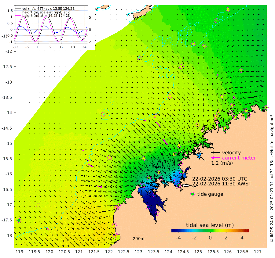 34cm/s 120T +10cm/s rms + 1cm/s 1T. NWSBRW 205m 46cm/s 136T +11cm/s rms + 6cm/s -110T. NWSROW 199m 112cm/s 141T +5cm/s rms + 2cm/s 65T. CAM050 58m 79cm/s 138T +12cm/s rms + 5cm/s 92T. CAM100 99m 16cm/s 115T +7cm/s rms + 1cm/s -85T. KIM400 396m 36cm/s 116T +9cm/s rms + 5cm/s -119T. KIM200 208m 67cm/s 123T +11cm/s rms + 5cm/s -147T. KIM100 99m 76cm/s 102T +8cm/s rms + 3cm/s -103T. KIM050 59m 22cm/s -145T +4cm/s rms + 2cm/s 23T. TIMORS88 91m -24cm Imperieuse Reef 125cm Mermaid Reef 225cm Broome 184cm Cape Baskerville 115cm Red Bluff 168cm Cape Boileau 115cm Scott Reef (WA) 88cm Ashmore Reef -36cm Karrakatta Bay -78cm Sunday Island -404cm Valentine Island -501cm Derby -346cm Port Usborne 54cm Bedford Islands 64cm Yampi Sound (Koolan Island) 84cm Macleay Island 116cm Adele Island 203cm Browse Island -5cm Shale Island -13cm Lizard Island 88cm Hall Point 131cm Degerando Island 156cm White Island 108cm Skua No. 4 Well 68cm Jabiru 180cm Maret Island 168cm Baudin Island 172cm Cape Voltaire (Krait Bay) 39cm Dillon Shoal 95cm Laminaria 161cm Port Warrender 110cm Troughton Island 166cm Cassini Island 126cm West Holothuria Reef Offshore 102cm Jar Island 126cm Lynher Bank 164cm Heywood Shoal 75cm Pee Shoal 57cm Van Cloon Shoal 105cm Carronade Island 115cm Guy Point 104cm Napier Broome Bay 63cm Lesueur Island