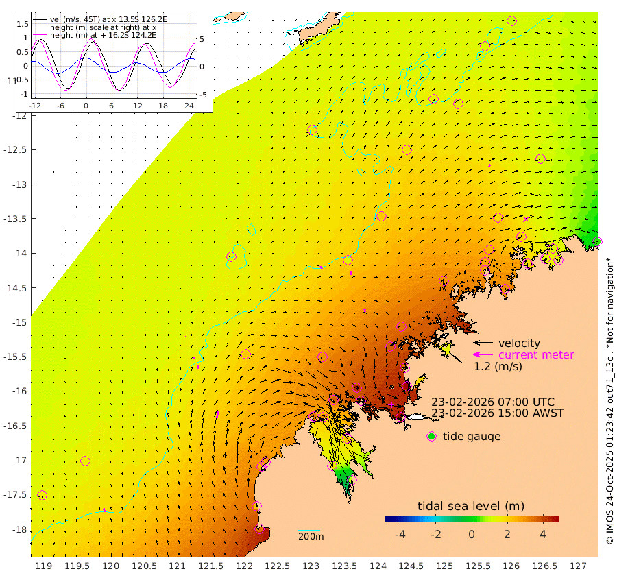 22cm/s -33T +10cm/s rms + 1cm/s 1T. NWSBRW 205m 23cm/s -13T +11cm/s rms + 6cm/s -110T. NWSROW 199m 17cm/s -7T +5cm/s rms + 2cm/s 65T. CAM050 58m 19cm/s 4T +12cm/s rms + 5cm/s 92T. CAM100 99m 7cm/s 18T +7cm/s rms + 1cm/s -85T. KIM400 396m 12cm/s 17T +9cm/s rms + 5cm/s -119T. KIM200 208m 25cm/s 11T +11cm/s rms + 5cm/s -147T. KIM100 99m 42cm/s 8T +8cm/s rms + 3cm/s -103T. KIM050 59m 19cm/s 35T +4cm/s rms + 2cm/s 23T. TIMORS88 91m 164cm Imperieuse Reef 141cm Mermaid Reef 342cm Broome 246cm Cape Baskerville 277cm Red Bluff 238cm Cape Boileau 128cm Scott Reef (WA) 164cm Ashmore Reef 338cm Karrakatta Bay 310cm Sunday Island 195cm Valentine Island 95cm Derby 221cm Port Usborne 372cm Bedford Islands 435cm Yampi Sound (Koolan Island) 437cm Macleay Island 289cm Adele Island 129cm Browse Island 524cm Shale Island 522cm Lizard Island 332cm Hall Point 372cm Degerando Island 343cm White Island 170cm Skua No. 4 Well 142cm Jabiru 285cm Maret Island 262cm Baudin Island 268cm Cape Voltaire (Krait Bay) 126cm Dillon Shoal 97cm Laminaria 295cm Port Warrender 202cm Troughton Island 249cm Cassini Island 183cm West Holothuria Reef Offshore 192cm Jar Island 211cm Lynher Bank 220cm Heywood Shoal 150cm Pee Shoal 117cm Van Cloon Shoal 121cm Carronade Island 120cm Guy Point 121cm Napier Broome Bay 40cm Lesueur Island