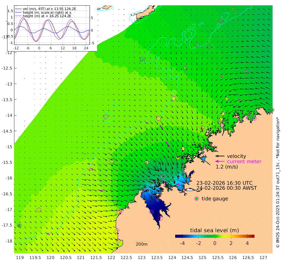 23cm/s 125T +10cm/s rms + 1cm/s 1T. NWSBRW 205m 33cm/s 134T +11cm/s rms + 6cm/s -110T. NWSROW 199m 85cm/s 145T +5cm/s rms + 2cm/s 65T. CAM050 58m 59cm/s 143T +12cm/s rms + 5cm/s 92T. CAM100 99m 12cm/s 118T +7cm/s rms + 1cm/s -85T. KIM400 396m 25cm/s 118T +9cm/s rms + 5cm/s -119T. KIM200 208m 46cm/s 126T +11cm/s rms + 5cm/s -147T. KIM100 99m 57cm/s 103T +8cm/s rms + 3cm/s -103T. KIM050 59m 28cm/s -124T +4cm/s rms + 2cm/s 23T. TIMORS88 91m -47cm Imperieuse Reef 66cm Mermaid Reef 164cm Broome 118cm Cape Baskerville 93cm Red Bluff 122cm Cape Boileau 55cm Scott Reef (WA) 28cm Ashmore Reef -49cm Karrakatta Bay -80cm Sunday Island -389cm Valentine Island -460cm Derby -321cm Port Usborne 20cm Bedford Islands 39cm Yampi Sound (Koolan Island) 34cm Macleay Island 62cm Adele Island 144cm Browse Island -13cm Shale Island -3cm Lizard Island 26cm Hall Point 91cm Degerando Island 112cm White Island 35cm Skua No. 4 Well -30cm Jabiru 111cm Maret Island 101cm Baudin Island 105cm Cape Voltaire (Krait Bay) -22cm Dillon Shoal 14cm Laminaria 100cm Port Warrender 24cm Troughton Island 89cm Cassini Island 56cm West Holothuria Reef Offshore 42cm Jar Island 73cm Lynher Bank 90cm Heywood Shoal 3cm Pee Shoal 0cm Van Cloon Shoal 41cm Carronade Island 40cm Guy Point 47cm Napier Broome Bay -17cm Lesueur Island
