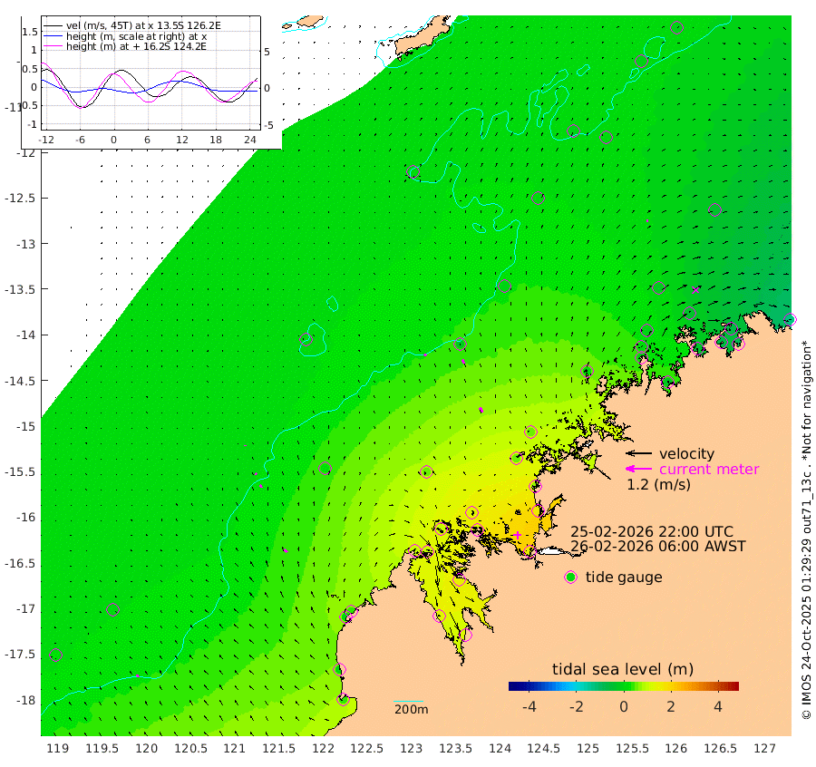 12cm/s -42T +10cm/s rms + 1cm/s 1T. NWSBRW 205m 14cm/s -32T +11cm/s rms + 6cm/s -110T. NWSROW 199m 24cm/s -30T +5cm/s rms + 2cm/s 65T. CAM050 58m 19cm/s -28T +12cm/s rms + 5cm/s 92T. CAM100 99m 2cm/s 1T +7cm/s rms + 1cm/s -85T. KIM400 396m 7cm/s -33T +9cm/s rms + 5cm/s -119T. KIM200 208m 15cm/s -34T +11cm/s rms + 5cm/s -147T. KIM100 99m 18cm/s -39T +8cm/s rms + 3cm/s -103T. KIM050 59m 9cm/s 64T +4cm/s rms + 2cm/s 23T. TIMORS88 91m 27cm Imperieuse Reef 0cm Mermaid Reef 40cm Broome 12cm Cape Baskerville 31cm Red Bluff 7cm Cape Boileau 1cm Scott Reef (WA) 1cm Ashmore Reef 99cm Karrakatta Bay 102cm Sunday Island 128cm Valentine Island 125cm Derby 141cm Port Usborne 94cm Bedford Islands 101cm Yampi Sound (Koolan Island) 126cm Macleay Island 50cm Adele Island -18cm Browse Island 149cm Shale Island 157cm Lizard Island 65cm Hall Point 56cm Degerando Island 45cm White Island 4cm Skua No. 4 Well 1cm Jabiru 16cm Maret Island 4cm Baudin Island -3cm Cape Voltaire (Krait Bay) -10cm Dillon Shoal -5cm Laminaria -15cm Port Warrender -37cm Troughton Island -14cm Cassini Island -25cm West Holothuria Reef Offshore -35cm Jar Island 20cm Lynher Bank -2cm Heywood Shoal -9cm Pee Shoal -45cm Van Cloon Shoal -71cm Carronade Island -72cm Guy Point -77cm Napier Broome Bay -122cm Lesueur Island