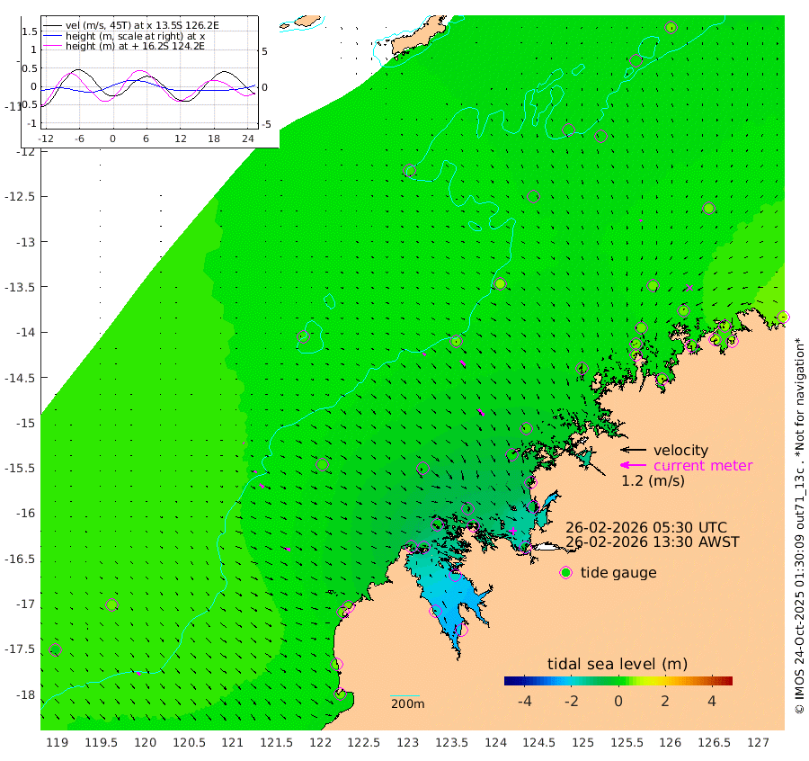 16cm/s 123T +10cm/s rms + 1cm/s 1T. NWSBRW 205m 18cm/s 138T +11cm/s rms + 6cm/s -110T. NWSROW 199m 39cm/s 139T +5cm/s rms + 2cm/s 65T. CAM050 58m 30cm/s 136T +12cm/s rms + 5cm/s 92T. CAM100 99m 5cm/s 121T +7cm/s rms + 1cm/s -85T. KIM400 396m 13cm/s 122T +9cm/s rms + 5cm/s -119T. KIM200 208m 24cm/s 130T +11cm/s rms + 5cm/s -147T. KIM100 99m 28cm/s 107T +8cm/s rms + 3cm/s -103T. KIM050 59m 8cm/s 157T +4cm/s rms + 2cm/s 23T. TIMORS88 91m -10cm Imperieuse Reef 47cm Mermaid Reef 57cm Broome 52cm Cape Baskerville 45cm Red Bluff 53cm Cape Boileau 38cm Scott Reef (WA) 31cm Ashmore Reef -45cm Karrakatta Bay -44cm Sunday Island -188cm Valentine Island -204cm Derby -166cm Port Usborne -15cm Bedford Islands -5cm Yampi Sound (Koolan Island) -52cm Macleay Island 11cm Adele Island 47cm Browse Island -44cm Shale Island -45cm Lizard Island -9cm Hall Point 27cm Degerando Island 44cm White Island 29cm Skua No. 4 Well 21cm Jabiru 45cm Maret Island 53cm Baudin Island 60cm Cape Voltaire (Krait Bay) 26cm Dillon Shoal 48cm Laminaria 66cm Port Warrender 46cm Troughton Island 54cm Cassini Island 55cm West Holothuria Reef Offshore 57cm Jar Island 41cm Lynher Bank 68cm Heywood Shoal 27cm Pee Shoal 48cm Van Cloon Shoal 75cm Carronade Island 80cm Guy Point 79cm Napier Broome Bay 87cm Lesueur Island