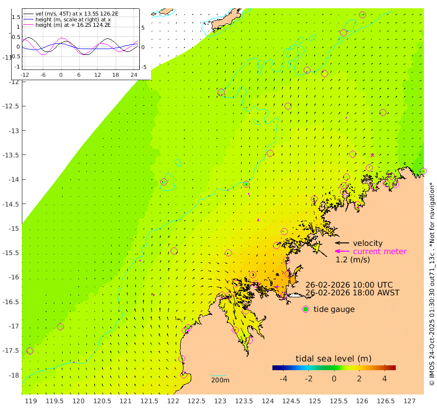 10cm/s -31T +10cm/s rms + 1cm/s 1T. NWSBRW 205m 12cm/s -21T +11cm/s rms + 6cm/s -110T. NWSROW 199m 17cm/s -12T +5cm/s rms + 2cm/s 65T. CAM050 58m 15cm/s -3T +12cm/s rms + 5cm/s 92T. CAM100 99m 3cm/s 18T +7cm/s rms + 1cm/s -85T. KIM400 396m 5cm/s 2T +9cm/s rms + 5cm/s -119T. KIM200 208m 13cm/s -2T +11cm/s rms + 5cm/s -147T. KIM100 99m 18cm/s -7T +8cm/s rms + 3cm/s -103T. KIM050 59m 9cm/s 6T +4cm/s rms + 2cm/s 23T. TIMORS88 91m 90cm Imperieuse Reef 68cm Mermaid Reef 117cm Broome 85cm Cape Baskerville 68cm Red Bluff 90cm Cape Boileau 69cm Scott Reef (WA) 84cm Ashmore Reef 144cm Karrakatta Bay 148cm Sunday Island 167cm Valentine Island 150cm Derby 172cm Port Usborne 144cm Bedford Islands 172cm Yampi Sound (Koolan Island) 194cm Macleay Island 121cm Adele Island 54cm Browse Island 212cm Shale Island 245cm Lizard Island 132cm Hall Point 136cm Degerando Island 133cm White Island 92cm Skua No. 4 Well 107cm Jabiru 114cm Maret Island 101cm Baudin Island 112cm Cape Voltaire (Krait Bay) 83cm Dillon Shoal 70cm Laminaria 121cm Port Warrender 115cm Troughton Island 103cm Cassini Island 91cm West Holothuria Reef Offshore 99cm Jar Island 96cm Lynher Bank 96cm Heywood Shoal 90cm Pee Shoal 80cm Van Cloon Shoal 81cm Carronade Island 86cm Guy Point 86cm Napier Broome Bay 71cm Lesueur Island