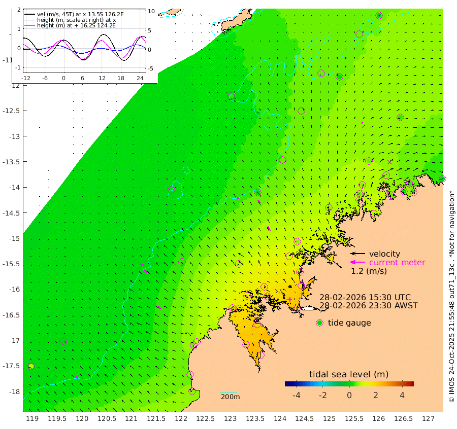 18cm/s -52T +10cm/s rms + 1cm/s 1T. NWSBRW 205m 23cm/s -36T +11cm/s rms + 6cm/s -110T. NWSROW 199m 38cm/s -32T +5cm/s rms + 2cm/s 65T. CAM050 58m 31cm/s -33T +12cm/s rms + 5cm/s 92T. CAM100 99m 8cm/s -47T +7cm/s rms + 1cm/s -85T. KIM400 396m 16cm/s -45T +9cm/s rms + 5cm/s -119T. KIM200 208m 29cm/s -37T +11cm/s rms + 5cm/s -147T. KIM100 99m 30cm/s -43T +8cm/s rms + 3cm/s -103T. KIM050 59m 16cm/s 22T +4cm/s rms + 2cm/s 23T. TIMORS88 91m 77cm Imperieuse Reef 9cm Mermaid Reef 68cm Broome 52cm Cape Baskerville 91cm Red Bluff 63cm Cape Boileau 15cm Scott Reef (WA) 43cm Ashmore Reef 148cm Karrakatta Bay 138cm Sunday Island 204cm Valentine Island 191cm Derby 186cm Port Usborne 134cm Bedford Islands 140cm Yampi Sound (Koolan Island) 159cm Macleay Island 89cm Adele Island 0cm Browse Island 189cm Shale Island 158cm Lizard Island 97cm Hall Point 117cm Degerando Island 74cm White Island 46cm Skua No. 4 Well 26cm Jabiru 72cm Maret Island 56cm Baudin Island 66cm Cape Voltaire (Krait Bay) 55cm Dillon Shoal -8cm Laminaria 87cm Port Warrender 68cm Troughton Island 74cm Cassini Island 46cm West Holothuria Reef Offshore 54cm Jar Island 34cm Lynher Bank 47cm Heywood Shoal 54cm Pee Shoal 45cm Van Cloon Shoal 30cm Carronade Island 27cm Guy Point 35cm Napier Broome Bay 5cm Lesueur Island