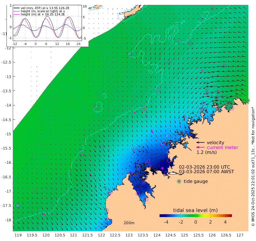 35cm/s 134T +10cm/s rms + 1cm/s 1T. NWSBRW 205m 41cm/s 150T +11cm/s rms + 6cm/s -110T. NWSROW 199m 64cm/s 152T +5cm/s rms + 2cm/s 65T. CAM050 58m 50cm/s 154T +12cm/s rms + 5cm/s 92T. CAM100 99m 11cm/s 148T +7cm/s rms + 1cm/s -85T. KIM400 396m 24cm/s 141T +9cm/s rms + 5cm/s -119T. KIM200 208m 48cm/s 147T +11cm/s rms + 5cm/s -147T. KIM100 99m 51cm/s 147T +8cm/s rms + 3cm/s -103T. KIM050 59m 35cm/s -132T +4cm/s rms + 2cm/s 23T. TIMORS88 91m -154cm Imperieuse Reef -58cm Mermaid Reef -182cm Broome -133cm Cape Baskerville -220cm Red Bluff -145cm Cape Boileau -57cm Scott Reef (WA) -102cm Ashmore Reef -310cm Karrakatta Bay -315cm Sunday Island -349cm Valentine Island -313cm Derby -336cm Port Usborne -305cm Bedford Islands -327cm Yampi Sound (Koolan Island) -320cm Macleay Island -198cm Adele Island -4cm Browse Island -422cm Shale Island -402cm Lizard Island -225cm Hall Point -262cm Degerando Island -201cm White Island -100cm Skua No. 4 Well -86cm Jabiru -161cm Maret Island -141cm Baudin Island -148cm Cape Voltaire (Krait Bay) -104cm Dillon Shoal -39cm Laminaria -182cm Port Warrender -119cm Troughton Island -144cm Cassini Island -101cm West Holothuria Reef Offshore -111cm Jar Island -117cm Lynher Bank -124cm Heywood Shoal -108cm Pee Shoal -89cm Van Cloon Shoal -56cm Carronade Island -52cm Guy Point -68cm Napier Broome Bay -1cm Lesueur Island