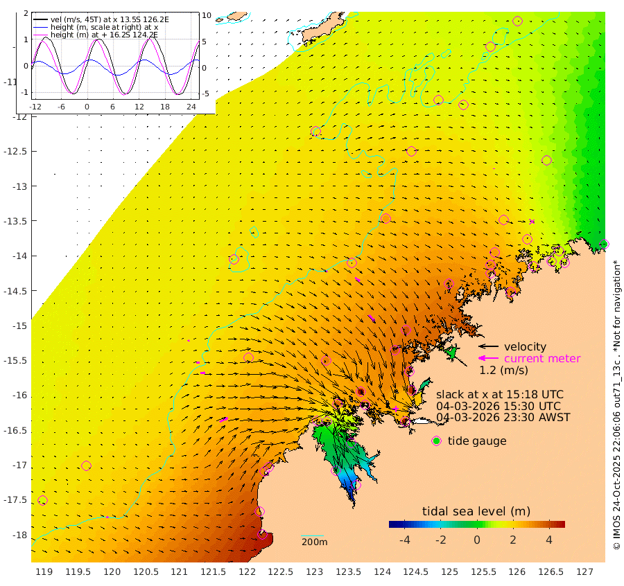 9cm/s 55T +10cm/s rms + 1cm/s 1T. NWSBRW 205m 14cm/s 78T +11cm/s rms + 6cm/s -110T. NWSROW 199m 51cm/s 138T +5cm/s rms + 2cm/s 65T. CAM050 58m 35cm/s 125T +12cm/s rms + 5cm/s 92T. CAM100 99m 10cm/s 79T +7cm/s rms + 1cm/s -85T. KIM400 396m 19cm/s 89T +9cm/s rms + 5cm/s -119T. KIM200 208m 30cm/s 92T +11cm/s rms + 5cm/s -147T. KIM100 99m 55cm/s 62T +8cm/s rms + 3cm/s -103T. KIM050 59m 3cm/s 10T +4cm/s rms + 2cm/s 23T. TIMORS88 91m 108cm Imperieuse Reef 175cm Mermaid Reef 413cm Broome 309cm Cape Baskerville 337cm Red Bluff 315cm Cape Boileau 163cm Scott Reef (WA) 172cm Ashmore Reef 280cm Karrakatta Bay 244cm Sunday Island -61cm Valentine Island -197cm Derby -11cm Port Usborne 346cm Bedford Islands 404cm Yampi Sound (Koolan Island) 455cm Macleay Island 325cm Adele Island 217cm Browse Island 436cm Shale Island 423cm Lizard Island 387cm Hall Point 387cm Degerando Island 376cm White Island 188cm Skua No. 4 Well 122cm Jabiru 332cm Maret Island 302cm Baudin Island 301cm Cape Voltaire (Krait Bay) 123cm Dillon Shoal 111cm Laminaria 326cm Port Warrender 187cm Troughton Island 282cm Cassini Island 209cm West Holothuria Reef Offshore 181cm Jar Island 235cm Lynher Bank 272cm Heywood Shoal 154cm Pee Shoal 108cm Van Cloon Shoal 122cm Carronade Island 129cm Guy Point 132cm Napier Broome Bay -18cm Lesueur Island
