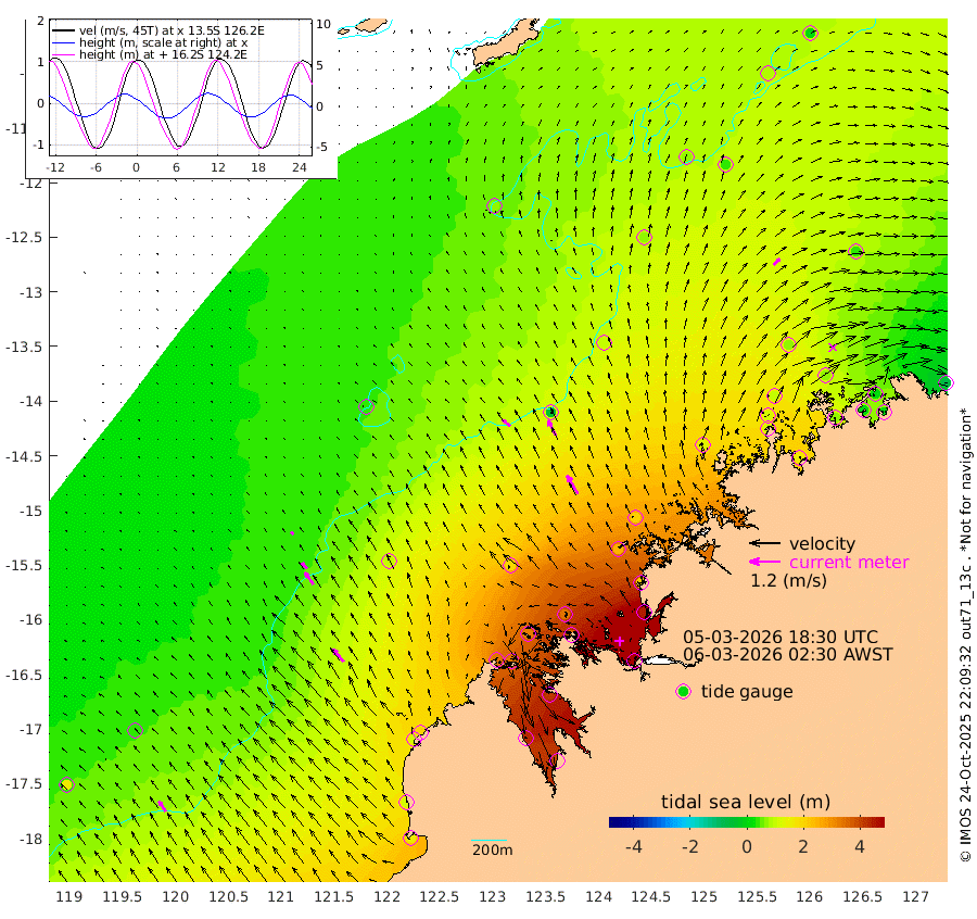 38cm/s -48T +10cm/s rms + 1cm/s 1T. NWSBRW 205m 49cm/s -34T +11cm/s rms + 6cm/s -110T. NWSROW 199m 85cm/s -30T +5cm/s rms + 2cm/s 65T. CAM050 58m 66cm/s -28T +12cm/s rms + 5cm/s 92T. CAM100 99m 14cm/s -38T +7cm/s rms + 1cm/s -85T. KIM400 396m 30cm/s -41T +9cm/s rms + 5cm/s -119T. KIM200 208m 57cm/s -36T +11cm/s rms + 5cm/s -147T. KIM100 99m 65cm/s -39T +8cm/s rms + 3cm/s -103T. KIM050 59m 34cm/s 43T +4cm/s rms + 2cm/s 23T. TIMORS88 91m 151cm Imperieuse Reef 33cm Mermaid Reef 161cm Broome 107cm Cape Baskerville 200cm Red Bluff 117cm Cape Boileau 31cm Scott Reef (WA) 70cm Ashmore Reef 332cm Karrakatta Bay 345cm Sunday Island 421cm Valentine Island 390cm Derby 405cm Port Usborne 319cm Bedford Islands 349cm Yampi Sound (Koolan Island) 336cm Macleay Island 181cm Adele Island -35cm Browse Island 468cm Shale Island 444cm Lizard Island 215cm Hall Point 255cm Degerando Island 200cm White Island 64cm Skua No. 4 Well 42cm Jabiru 128cm Maret Island 115cm Baudin Island 114cm Cape Voltaire (Krait Bay) 75cm Dillon Shoal 3cm Laminaria 154cm Port Warrender 72cm Troughton Island 95cm Cassini Island 60cm West Holothuria Reef Offshore 74cm Jar Island 100cm Lynher Bank 91cm Heywood Shoal 66cm Pee Shoal 42cm Van Cloon Shoal 5cm Carronade Island 5cm Guy Point 6cm Napier Broome Bay -64cm Lesueur Island