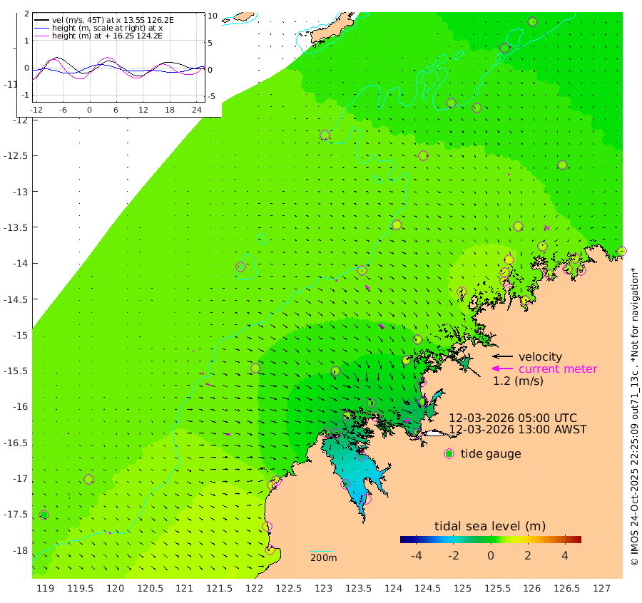 11cm/s 112T +10cm/s rms + 1cm/s 1T. NWSBRW 205m 13cm/s 129T +11cm/s rms + 6cm/s -110T. NWSROW 199m 35cm/s 136T +5cm/s rms + 2cm/s 65T. CAM050 58m 26cm/s 130T +12cm/s rms + 5cm/s 92T. CAM100 99m 4cm/s 105T +7cm/s rms + 1cm/s -85T. KIM400 396m 11cm/s 109T +9cm/s rms + 5cm/s -119T. KIM200 208m 20cm/s 116T +11cm/s rms + 5cm/s -147T. KIM100 99m 26cm/s 90T +8cm/s rms + 3cm/s -103T. KIM050 59m 7cm/s 142T +4cm/s rms + 2cm/s 23T. TIMORS88 91m 26cm Imperieuse Reef 67cm Mermaid Reef 122cm Broome 103cm Cape Baskerville 99cm Red Bluff 98cm Cape Boileau 58cm Scott Reef (WA) 63cm Ashmore Reef 35cm Karrakatta Bay 12cm Sunday Island -129cm Valentine Island -178cm Derby -111cm Port Usborne 70cm Bedford Islands 75cm Yampi Sound (Koolan Island) 40cm Macleay Island 67cm Adele Island 74cm Browse Island 59cm Shale Island 52cm Lizard Island 15cm Hall Point 98cm Degerando Island 93cm White Island 68cm Skua No. 4 Well 46cm Jabiru 103cm Maret Island 102cm Baudin Island 106cm Cape Voltaire (Krait Bay) 41cm Dillon Shoal 58cm Laminaria 107cm Port Warrender 84cm Troughton Island 107cm Cassini Island 80cm West Holothuria Reef Offshore 84cm Jar Island 74cm Lynher Bank 101cm Heywood Shoal 60cm Pee Shoal 62cm Van Cloon Shoal 80cm Carronade Island 81cm Guy Point 85cm Napier Broome Bay 76cm Lesueur Island
