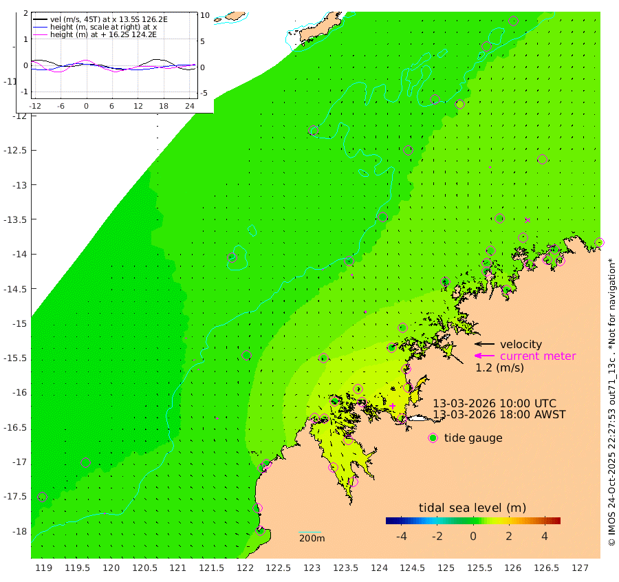 5cm/s -38T +10cm/s rms + 1cm/s 1T. NWSBRW 205m 6cm/s -39T +11cm/s rms + 6cm/s -110T. NWSROW 199m 13cm/s -24T +5cm/s rms + 2cm/s 65T. CAM050 58m 9cm/s -14T +12cm/s rms + 5cm/s 92T. CAM100 99m 1cm/s 1T +7cm/s rms + 1cm/s -85T. KIM400 396m 3cm/s -40T +9cm/s rms + 5cm/s -119T. KIM200 208m 7cm/s -28T +11cm/s rms + 5cm/s -147T. KIM100 99m 8cm/s -39T +8cm/s rms + 3cm/s -103T. KIM050 59m 7cm/s -14T +4cm/s rms + 2cm/s 23T. TIMORS88 91m 37cm Imperieuse Reef 21cm Mermaid Reef 16cm Broome 17cm Cape Baskerville 13cm Red Bluff 18cm Cape Boileau 19cm Scott Reef (WA) 34cm Ashmore Reef 62cm Karrakatta Bay 57cm Sunday Island 117cm Valentine Island 115cm Derby 97cm Port Usborne 24cm Bedford Islands 50cm Yampi Sound (Koolan Island) 66cm Macleay Island 35cm Adele Island 11cm Browse Island 72cm Shale Island 81cm Lizard Island 120cm Hall Point 25cm Degerando Island 39cm White Island 33cm Skua No. 4 Well 69cm Jabiru 27cm Maret Island 40cm Baudin Island 27cm Cape Voltaire (Krait Bay) 44cm Dillon Shoal 32cm Laminaria 34cm Port Warrender 55cm Troughton Island 31cm Cassini Island 42cm West Holothuria Reef Offshore 50cm Jar Island 22cm Lynher Bank 22cm Heywood Shoal 37cm Pee Shoal 45cm Van Cloon Shoal 44cm Carronade Island 47cm Guy Point 48cm Napier Broome Bay 62cm Lesueur Island