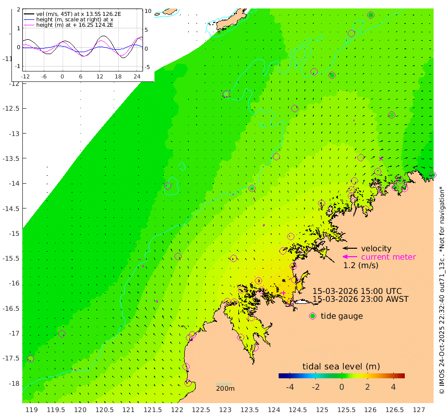 9cm/s -45T +10cm/s rms + 1cm/s 1T. NWSBRW 205m 13cm/s -28T +11cm/s rms + 6cm/s -110T. NWSROW 199m 13cm/s -27T +5cm/s rms + 2cm/s 65T. CAM050 58m 12cm/s -26T +12cm/s rms + 5cm/s 92T. CAM100 99m 4cm/s -30T +7cm/s rms + 1cm/s -85T. KIM400 396m 8cm/s -28T +9cm/s rms + 5cm/s -119T. KIM200 208m 15cm/s -22T +11cm/s rms + 5cm/s -147T. KIM100 99m 18cm/s -10T +8cm/s rms + 3cm/s -103T. KIM050 59m 9cm/s 4T +4cm/s rms + 2cm/s 23T. TIMORS88 91m 57cm Imperieuse Reef 32cm Mermaid Reef 109cm Broome 91cm Cape Baskerville 128cm Red Bluff 95cm Cape Boileau 32cm Scott Reef (WA) 49cm Ashmore Reef 140cm Karrakatta Bay 132cm Sunday Island 133cm Valentine Island 85cm Derby 106cm Port Usborne 141cm Bedford Islands 155cm Yampi Sound (Koolan Island) 184cm Macleay Island 114cm Adele Island 36cm Browse Island 184cm Shale Island 146cm Lizard Island 159cm Hall Point 135cm Degerando Island 116cm White Island 50cm Skua No. 4 Well 29cm Jabiru 97cm Maret Island 94cm Baudin Island 85cm Cape Voltaire (Krait Bay) 52cm Dillon Shoal 5cm Laminaria 118cm Port Warrender 70cm Troughton Island 88cm Cassini Island 67cm West Holothuria Reef Offshore 62cm Jar Island 56cm Lynher Bank 68cm Heywood Shoal 52cm Pee Shoal 44cm Van Cloon Shoal 37cm Carronade Island 39cm Guy Point 40cm Napier Broome Bay -2cm Lesueur Island