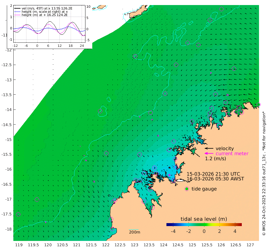 14cm/s 140T +10cm/s rms + 1cm/s 1T. NWSBRW 205m 17cm/s 154T +11cm/s rms + 6cm/s -110T. NWSROW 199m 21cm/s 166T +5cm/s rms + 2cm/s 65T. CAM050 58m 18cm/s 167T +12cm/s rms + 5cm/s 92T. CAM100 99m 5cm/s 162T +7cm/s rms + 1cm/s -85T. KIM400 396m 10cm/s 152T +9cm/s rms + 5cm/s -119T. KIM200 208m 20cm/s 160T +11cm/s rms + 5cm/s -147T. KIM100 99m 23cm/s 168T +8cm/s rms + 3cm/s -103T. KIM050 59m 19cm/s -128T +4cm/s rms + 2cm/s 23T. TIMORS88 91m -89cm Imperieuse Reef -58cm Mermaid Reef -139cm Broome -113cm Cape Baskerville -168cm Red Bluff -123cm Cape Boileau -58cm Scott Reef (WA) -81cm Ashmore Reef -175cm Karrakatta Bay -179cm Sunday Island -179cm Valentine Island -130cm Derby -150cm Port Usborne -183cm Bedford Islands -202cm Yampi Sound (Koolan Island) -212cm Macleay Island -147cm Adele Island -37cm Browse Island -236cm Shale Island -233cm Lizard Island -199cm Hall Point -176cm Degerando Island -150cm White Island -82cm Skua No. 4 Well -78cm Jabiru -129cm Maret Island -114cm Baudin Island -122cm Cape Voltaire (Krait Bay) -85cm Dillon Shoal -45cm Laminaria -159cm Port Warrender -105cm Troughton Island -122cm Cassini Island -99cm West Holothuria Reef Offshore -95cm Jar Island -91cm Lynher Bank -109cm Heywood Shoal -92cm Pee Shoal -83cm Van Cloon Shoal -73cm Carronade Island -74cm Guy Point -83cm Napier Broome Bay -33cm Lesueur Island