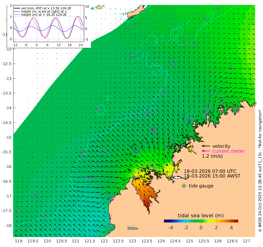 32cm/s -55T +10cm/s rms + 1cm/s 1T. NWSBRW 205m 34cm/s -47T +11cm/s rms + 6cm/s -110T. NWSROW 199m 86cm/s -36T +5cm/s rms + 2cm/s 65T. CAM050 58m 62cm/s -39T +12cm/s rms + 5cm/s 92T. CAM100 99m 13cm/s -68T +7cm/s rms + 1cm/s -85T. KIM400 396m 28cm/s -63T +9cm/s rms + 5cm/s -119T. KIM200 208m 52cm/s -55T +11cm/s rms + 5cm/s -147T. KIM100 99m 61cm/s -79T +8cm/s rms + 3cm/s -103T. KIM050 59m 22cm/s 50T +4cm/s rms + 2cm/s 23T. TIMORS88 91m 19cm Imperieuse Reef -96cm Mermaid Reef -182cm Broome -147cm Cape Baskerville -91cm Red Bluff -135cm Cape Boileau -91cm Scott Reef (WA) -73cm Ashmore Reef 1cm Karrakatta Bay 54cm Sunday Island 282cm Valentine Island 366cm Derby 240cm Port Usborne -46cm Bedford Islands -59cm Yampi Sound (Koolan Island) -123cm Macleay Island -110cm Adele Island -172cm Browse Island -19cm Shale Island -3cm Lizard Island -79cm Hall Point -100cm Degerando Island -121cm White Island -96cm Skua No. 4 Well -43cm Jabiru -147cm Maret Island -133cm Baudin Island -127cm Cape Voltaire (Krait Bay) -34cm Dillon Shoal -72cm Laminaria -104cm Port Warrender -77cm Troughton Island -131cm Cassini Island -93cm West Holothuria Reef Offshore -63cm Jar Island -90cm Lynher Bank -125cm Heywood Shoal -63cm Pee Shoal -27cm Van Cloon Shoal -52cm Carronade Island -60cm Guy Point -51cm Napier Broome Bay 8cm Lesueur Island