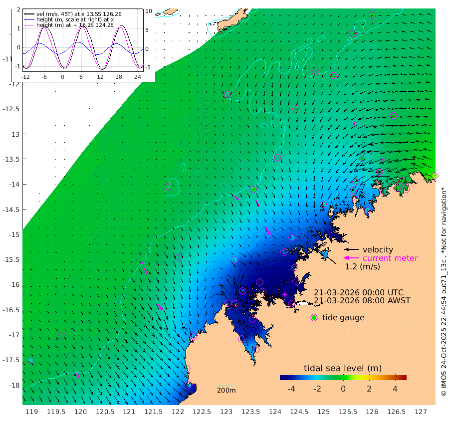 47cm/s 135T +10cm/s rms + 1cm/s 1T. NWSBRW 205m 48cm/s 149T +11cm/s rms + 6cm/s -110T. NWSROW 199m 78cm/s 150T +5cm/s rms + 2cm/s 65T. CAM050 58m 62cm/s 151T +12cm/s rms + 5cm/s 92T. CAM100 99m 12cm/s 148T +7cm/s rms + 1cm/s -85T. KIM400 396m 28cm/s 141T +9cm/s rms + 5cm/s -119T. KIM200 208m 57cm/s 148T +11cm/s rms + 5cm/s -147T. KIM100 99m 64cm/s 143T +8cm/s rms + 3cm/s -103T. KIM050 59m 33cm/s -141T +4cm/s rms + 2cm/s 23T. TIMORS88 91m -161cm Imperieuse Reef -48cm Mermaid Reef -213cm Broome -135cm Cape Baskerville -250cm Red Bluff -146cm Cape Boileau -42cm Scott Reef (WA) -92cm Ashmore Reef -364cm Karrakatta Bay -358cm Sunday Island -391cm Valentine Island -351cm Derby -392cm Port Usborne -341cm Bedford Islands -400cm Yampi Sound (Koolan Island) -393cm Macleay Island -222cm Adele Island 3cm Browse Island -530cm Shale Island -514cm Lizard Island -339cm Hall Point -300cm Degerando Island -247cm White Island -83cm Skua No. 4 Well -73cm Jabiru -171cm Maret Island -150cm Baudin Island -151cm Cape Voltaire (Krait Bay) -82cm Dillon Shoal -7cm Laminaria -186cm Port Warrender -92cm Troughton Island -136cm Cassini Island -86cm West Holothuria Reef Offshore -99cm Jar Island -118cm Lynher Bank -112cm Heywood Shoal -81cm Pee Shoal -54cm Van Cloon Shoal -19cm Carronade Island -8cm Guy Point -25cm Napier Broome Bay 75cm Lesueur Island
