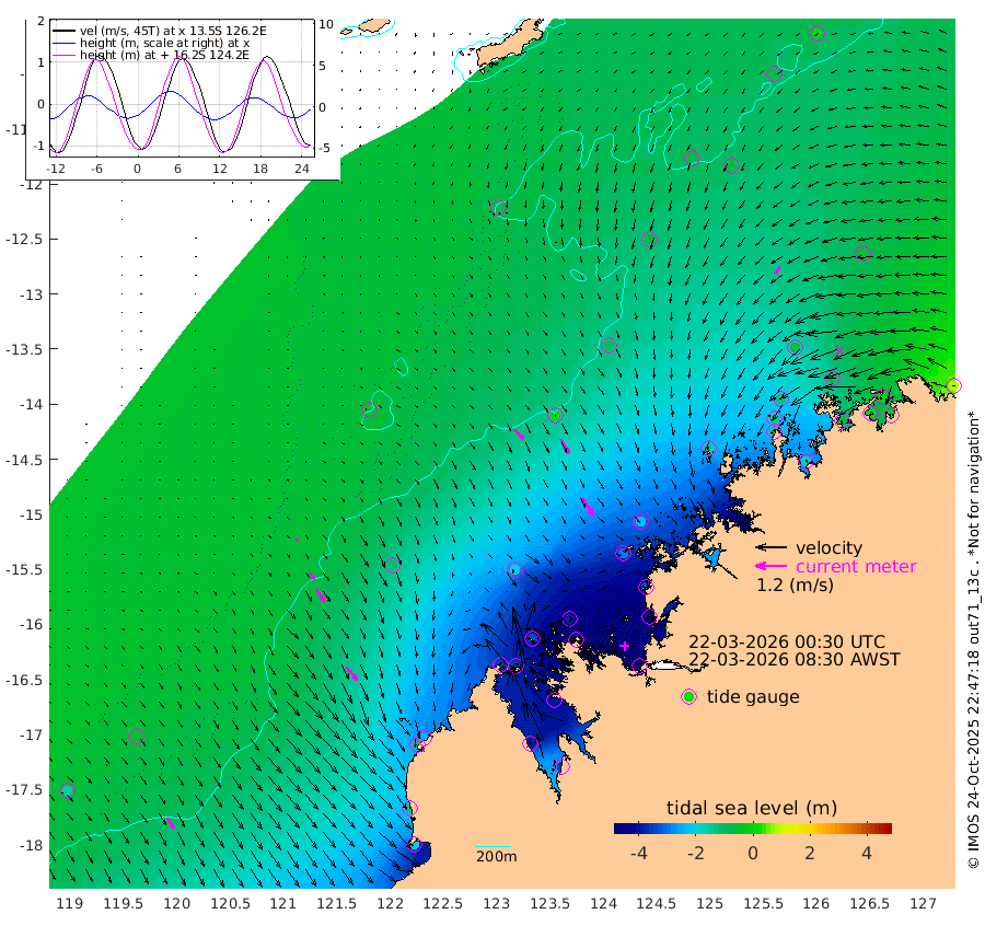 49cm/s 135T +10cm/s rms + 1cm/s 1T. NWSBRW 205m 49cm/s 148T +11cm/s rms + 6cm/s -110T. NWSROW 199m 80cm/s 149T +5cm/s rms + 2cm/s 65T. CAM050 58m 64cm/s 150T +12cm/s rms + 5cm/s 92T. CAM100 99m 12cm/s 147T +7cm/s rms + 1cm/s -85T. KIM400 396m 28cm/s 140T +9cm/s rms + 5cm/s -119T. KIM200 208m 58cm/s 147T +11cm/s rms + 5cm/s -147T. KIM100 99m 65cm/s 140T +8cm/s rms + 3cm/s -103T. KIM050 59m 31cm/s -147T +4cm/s rms + 2cm/s 23T. TIMORS88 91m -155cm Imperieuse Reef -39cm Mermaid Reef -200cm Broome -123cm Cape Baskerville -229cm Red Bluff -131cm Cape Boileau -33cm Scott Reef (WA) -81cm Ashmore Reef -357cm Karrakatta Bay -348cm Sunday Island -395cm Valentine Island -356cm Derby -397cm Port Usborne -333cm Bedford Islands -389cm Yampi Sound (Koolan Island) -383cm Macleay Island -209cm Adele Island 8cm Browse Island -521cm Shale Island -508cm Lizard Island -321cm Hall Point -287cm Degerando Island -234cm White Island -73cm Skua No. 4 Well -64cm Jabiru -158cm Maret Island -139cm Baudin Island -136cm Cape Voltaire (Krait Bay) -68cm Dillon Shoal 4cm Laminaria -168cm Port Warrender -80cm Troughton Island -121cm Cassini Island -71cm West Holothuria Reef Offshore -87cm Jar Island -109cm Lynher Bank -95cm Heywood Shoal -67cm Pee Shoal -40cm Van Cloon Shoal -5cm Carronade Island 7cm Guy Point -9cm Napier Broome Bay 84cm Lesueur Island