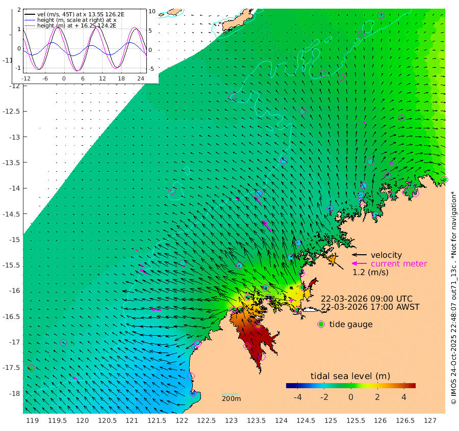 41cm/s -58T +10cm/s rms + 1cm/s 1T. NWSBRW 205m 44cm/s -50T +11cm/s rms + 6cm/s -110T. NWSROW 199m 117cm/s -37T +5cm/s rms + 2cm/s 65T. CAM050 58m 84cm/s -41T +12cm/s rms + 5cm/s 92T. CAM100 99m 18cm/s -70T +7cm/s rms + 1cm/s -85T. KIM400 396m 38cm/s -65T +9cm/s rms + 5cm/s -119T. KIM200 208m 69cm/s -57T +11cm/s rms + 5cm/s -147T. KIM100 99m 84cm/s -83T +8cm/s rms + 3cm/s -103T. KIM050 59m 24cm/s 26T +4cm/s rms + 2cm/s 23T. TIMORS88 91m 13cm Imperieuse Reef -150cm Mermaid Reef -294cm Broome -226cm Cape Baskerville -182cm Red Bluff -220cm Cape Boileau -138cm Scott Reef (WA) -109cm Ashmore Reef -13cm Karrakatta Bay 29cm Sunday Island 433cm Valentine Island 542cm Derby 351cm Port Usborne -112cm Bedford Islands -136cm Yampi Sound (Koolan Island) -163cm Macleay Island -170cm Adele Island -226cm Browse Island -75cm Shale Island -76cm Lizard Island -94cm Hall Point -192cm Degerando Island -214cm White Island -132cm Skua No. 4 Well -50cm Jabiru -226cm Maret Island -199cm Baudin Island -210cm Cape Voltaire (Krait Bay) -51cm Dillon Shoal -111cm Laminaria -193cm Port Warrender -106cm Troughton Island -195cm Cassini Island -142cm West Holothuria Reef Offshore -104cm Jar Island -161cm Lynher Bank -211cm Heywood Shoal -90cm Pee Shoal -52cm Van Cloon Shoal -94cm Carronade Island -105cm Guy Point -96cm Napier Broome Bay 3cm Lesueur Island