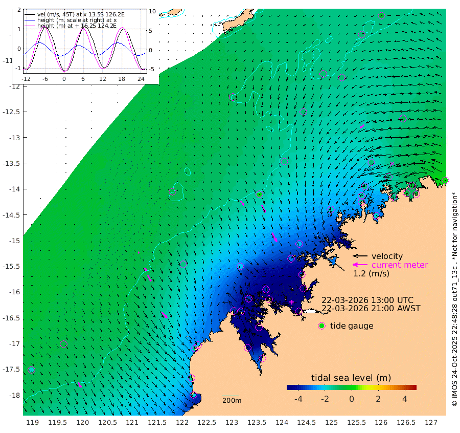 47cm/s 138T +10cm/s rms + 1cm/s 1T. NWSBRW 205m 47cm/s 148T +11cm/s rms + 6cm/s -110T. NWSROW 199m 85cm/s 153T +5cm/s rms + 2cm/s 65T. CAM050 58m 66cm/s 155T +12cm/s rms + 5cm/s 92T. CAM100 99m 13cm/s 149T +7cm/s rms + 1cm/s -85T. KIM400 396m 28cm/s 142T +9cm/s rms + 5cm/s -119T. KIM200 208m 55cm/s 149T +11cm/s rms + 5cm/s -147T. KIM100 99m 67cm/s 140T +8cm/s rms + 3cm/s -103T. KIM050 59m 43cm/s -127T +4cm/s rms + 2cm/s 23T. TIMORS88 91m -184cm Imperieuse Reef -67cm Mermaid Reef -199cm Broome -138cm Cape Baskerville -225cm Red Bluff -134cm Cape Boileau -62cm Scott Reef (WA) -117cm Ashmore Reef -372cm Karrakatta Bay -370cm Sunday Island -472cm Valentine Island -433cm Derby -451cm Port Usborne -346cm Bedford Islands -395cm Yampi Sound (Koolan Island) -386cm Macleay Island -222cm Adele Island 12cm Browse Island -528cm Shale Island -507cm Lizard Island -326cm Hall Point -290cm Degerando Island -239cm White Island -113cm Skua No. 4 Well -120cm Jabiru -175cm Maret Island -158cm Baudin Island -159cm Cape Voltaire (Krait Bay) -120cm Dillon Shoal -54cm Laminaria -192cm Port Warrender -133cm Troughton Island -149cm Cassini Island -107cm West Holothuria Reef Offshore -123cm Jar Island -131cm Lynher Bank -133cm Heywood Shoal -116cm Pee Shoal -84cm Van Cloon Shoal -49cm Carronade Island -48cm Guy Point -45cm Napier Broome Bay 12cm Lesueur Island