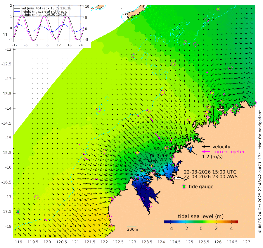 33cm/s 123T +10cm/s rms + 1cm/s 1T. NWSBRW 205m 44cm/s 134T +11cm/s rms + 6cm/s -110T. NWSROW 199m 114cm/s 143T +5cm/s rms + 2cm/s 65T. CAM050 58m 79cm/s 141T +12cm/s rms + 5cm/s 92T. CAM100 99m 17cm/s 115T +7cm/s rms + 1cm/s -85T. KIM400 396m 35cm/s 117T +9cm/s rms + 5cm/s -119T. KIM200 208m 64cm/s 124T +11cm/s rms + 5cm/s -147T. KIM100 99m 78cm/s 102T +8cm/s rms + 3cm/s -103T. KIM050 59m 34cm/s -130T +4cm/s rms + 2cm/s 23T. TIMORS88 91m -50cm Imperieuse Reef 104cm Mermaid Reef 229cm Broome 168cm Cape Baskerville 126cm Red Bluff 169cm Cape Boileau 93cm Scott Reef (WA) 58cm Ashmore Reef -44cm Karrakatta Bay -84cm Sunday Island -473cm Valentine Island -564cm Derby -386cm Port Usborne 47cm Bedford Islands 66cm Yampi Sound (Koolan Island) 90cm Macleay Island 109cm Adele Island 200cm Browse Island -3cm Shale Island 7cm Lizard Island 40cm Hall Point 129cm Degerando Island 154cm White Island 74cm Skua No. 4 Well -4cm Jabiru 163cm Maret Island 143cm Baudin Island 148cm Cape Voltaire (Krait Bay) -4cm Dillon Shoal 51cm Laminaria 131cm Port Warrender 47cm Troughton Island 133cm Cassini Island 88cm West Holothuria Reef Offshore 57cm Jar Island 110cm Lynher Bank 139cm Heywood Shoal 32cm Pee Shoal 9cm Van Cloon Shoal 52cm Carronade Island 54cm Guy Point 59cm Napier Broome Bay -34cm Lesueur Island