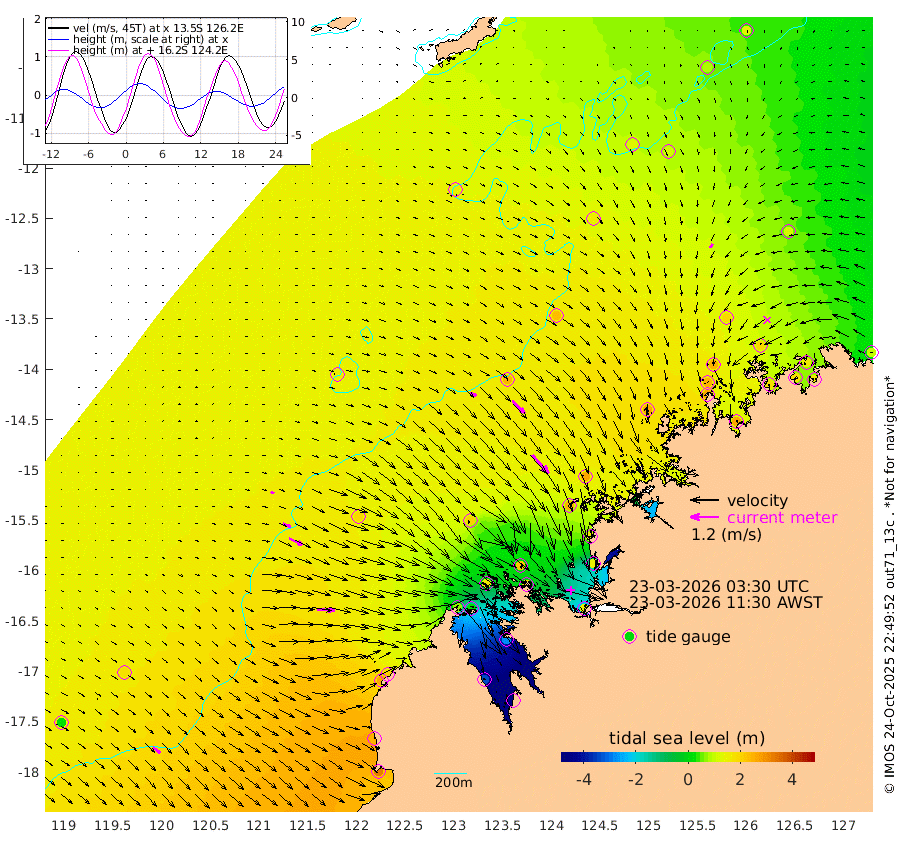 28cm/s 115T +10cm/s rms + 1cm/s 1T. NWSBRW 205m 39cm/s 130T +11cm/s rms + 6cm/s -110T. NWSROW 199m 106cm/s 139T +5cm/s rms + 2cm/s 65T. CAM050 58m 74cm/s 134T +12cm/s rms + 5cm/s 92T. CAM100 99m 16cm/s 107T +7cm/s rms + 1cm/s -85T. KIM400 396m 35cm/s 112T +9cm/s rms + 5cm/s -119T. KIM200 208m 63cm/s 117T +11cm/s rms + 5cm/s -147T. KIM100 99m 75cm/s 93T +8cm/s rms + 3cm/s -103T. KIM050 59m 19cm/s -147T +4cm/s rms + 2cm/s 23T. TIMORS88 91m 29cm Imperieuse Reef 170cm Mermaid Reef 325cm Broome 256cm Cape Baskerville 204cm Red Bluff 247cm Cape Boileau 157cm Scott Reef (WA) 143cm Ashmore Reef 63cm Karrakatta Bay 21cm Sunday Island -340cm Valentine Island -460cm Derby -277cm Port Usborne 160cm Bedford Islands 194cm Yampi Sound (Koolan Island) 211cm Macleay Island 205cm Adele Island 241cm Browse Island 144cm Shale Island 149cm Lizard Island 162cm Hall Point 242cm Degerando Island 261cm White Island 163cm Skua No. 4 Well 109cm Jabiru 267cm Maret Island 246cm Baudin Island 258cm Cape Voltaire (Krait Bay) 89cm Dillon Shoal 130cm Laminaria 261cm Port Warrender 180cm Troughton Island 247cm Cassini Island 192cm West Holothuria Reef Offshore 171cm Jar Island 192cm Lynher Bank 239cm Heywood Shoal 130cm Pee Shoal 110cm Van Cloon Shoal 160cm Carronade Island 170cm Guy Point 164cm Napier Broome Bay 95cm Lesueur Island