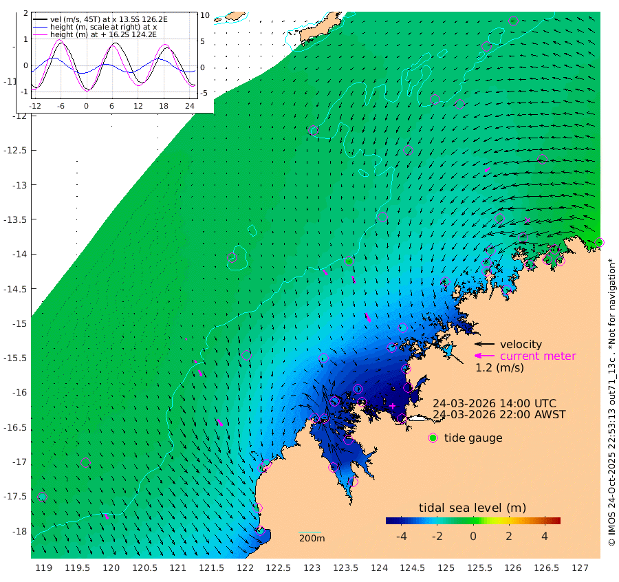 37cm/s 141T +10cm/s rms + 1cm/s 1T. NWSBRW 205m 35cm/s 151T +11cm/s rms + 6cm/s -110T. NWSROW 199m 61cm/s 157T +5cm/s rms + 2cm/s 65T. CAM050 58m 48cm/s 160T +12cm/s rms + 5cm/s 92T. CAM100 99m 9cm/s 160T +7cm/s rms + 1cm/s -85T. KIM400 396m 19cm/s 147T +9cm/s rms + 5cm/s -119T. KIM200 208m 40cm/s 153T +11cm/s rms + 5cm/s -147T. KIM100 99m 49cm/s 146T +8cm/s rms + 3cm/s -103T. KIM050 59m 38cm/s -123T +4cm/s rms + 2cm/s 23T. TIMORS88 91m -154cm Imperieuse Reef -73cm Mermaid Reef -177cm Broome -121cm Cape Baskerville -176cm Red Bluff -121cm Cape Boileau -71cm Scott Reef (WA) -109cm Ashmore Reef -302cm Karrakatta Bay -310cm Sunday Island -362cm Valentine Island -341cm Derby -363cm Port Usborne -288cm Bedford Islands -328cm Yampi Sound (Koolan Island) -326cm Macleay Island -192cm Adele Island -4cm Browse Island -433cm Shale Island -436cm Lizard Island -273cm Hall Point -243cm Degerando Island -206cm White Island -109cm Skua No. 4 Well -125cm Jabiru -154cm Maret Island -135cm Baudin Island -141cm Cape Voltaire (Krait Bay) -110cm Dillon Shoal -73cm Laminaria -158cm Port Warrender -114cm Troughton Island -128cm Cassini Island -97cm West Holothuria Reef Offshore -106cm Jar Island -127cm Lynher Bank -128cm Heywood Shoal -109cm Pee Shoal -78cm Van Cloon Shoal -48cm Carronade Island -51cm Guy Point -48cm Napier Broome Bay 4cm Lesueur Island