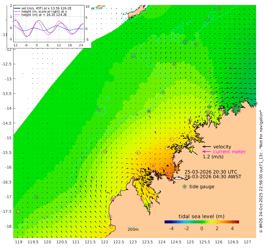 18cm/s -42T +10cm/s rms + 1cm/s 1T. NWSBRW 205m 21cm/s -29T +11cm/s rms + 6cm/s -110T. NWSROW 199m 33cm/s -31T +5cm/s rms + 2cm/s 65T. CAM050 58m 26cm/s -26T +12cm/s rms + 5cm/s 92T. CAM100 99m 4cm/s -8T +7cm/s rms + 1cm/s -85T. KIM400 396m 11cm/s -28T +9cm/s rms + 5cm/s -119T. KIM200 208m 22cm/s -30T +11cm/s rms + 5cm/s -147T. KIM100 99m 28cm/s -31T +8cm/s rms + 3cm/s -103T. KIM050 59m 16cm/s 52T +4cm/s rms + 2cm/s 23T. TIMORS88 91m 60cm Imperieuse Reef 20cm Mermaid Reef 99cm Broome 53cm Cape Baskerville 90cm Red Bluff 45cm Cape Boileau 16cm Scott Reef (WA) 27cm Ashmore Reef 170cm Karrakatta Bay 169cm Sunday Island 177cm Valentine Island 155cm Derby 194cm Port Usborne 170cm Bedford Islands 190cm Yampi Sound (Koolan Island) 199cm Macleay Island 98cm Adele Island -8cm Browse Island 263cm Shale Island 267cm Lizard Island 155cm Hall Point 129cm Degerando Island 111cm White Island 25cm Skua No. 4 Well 16cm Jabiru 64cm Maret Island 52cm Baudin Island 42cm Cape Voltaire (Krait Bay) 6cm Dillon Shoal 4cm Laminaria 41cm Port Warrender -6cm Troughton Island 25cm Cassini Island 3cm West Holothuria Reef Offshore -1cm Jar Island 57cm Lynher Bank 32cm Heywood Shoal 10cm Pee Shoal -27cm Van Cloon Shoal -52cm Carronade Island -54cm Guy Point -59cm Napier Broome Bay -116cm Lesueur Island