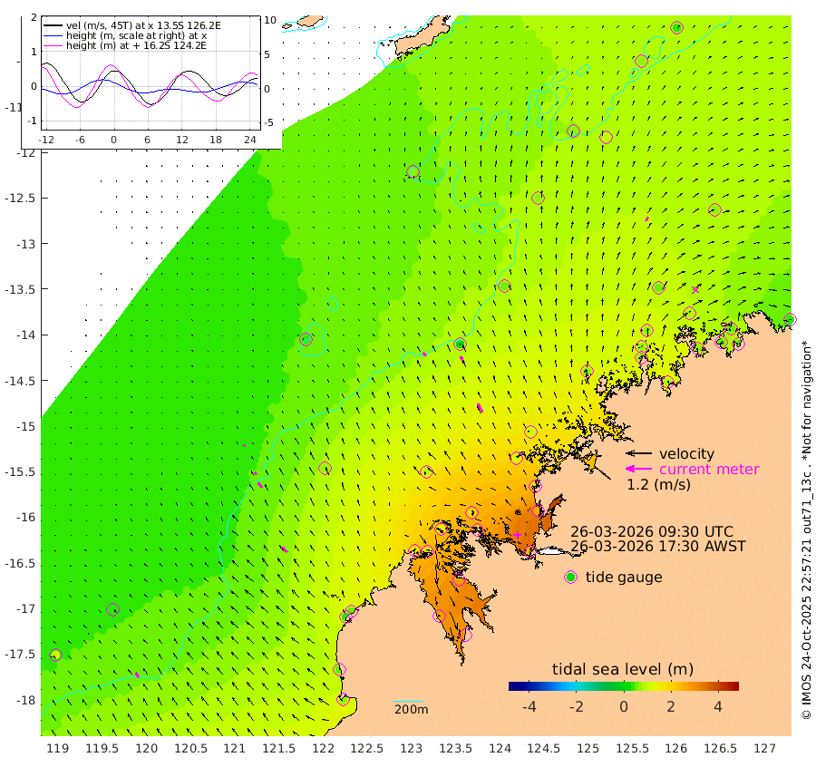 21cm/s -45T +10cm/s rms + 1cm/s 1T. NWSBRW 205m 25cm/s -35T +11cm/s rms + 6cm/s -110T. NWSROW 199m 46cm/s -29T +5cm/s rms + 2cm/s 65T. CAM050 58m 36cm/s -27T +12cm/s rms + 5cm/s 92T. CAM100 99m 6cm/s -34T +7cm/s rms + 1cm/s -85T. KIM400 396m 14cm/s -40T +9cm/s rms + 5cm/s -119T. KIM200 208m 29cm/s -33T +11cm/s rms + 5cm/s -147T. KIM100 99m 33cm/s -43T +8cm/s rms + 3cm/s -103T. KIM050 59m 20cm/s 22T +4cm/s rms + 2cm/s 23T. TIMORS88 91m 100cm Imperieuse Reef 33cm Mermaid Reef 69cm Broome 45cm Cape Baskerville 48cm Red Bluff 55cm Cape Boileau 38cm Scott Reef (WA) 60cm Ashmore Reef 169cm Karrakatta Bay 178cm Sunday Island 284cm Valentine Island 287cm Derby 273cm Port Usborne 145cm Bedford Islands 169cm Yampi Sound (Koolan Island) 191cm Macleay Island 99cm Adele Island 3cm Browse Island 234cm Shale Island 259cm Lizard Island 152cm Hall Point 118cm Degerando Island 98cm White Island 65cm Skua No. 4 Well 99cm Jabiru 73cm Maret Island 61cm Baudin Island 72cm Cape Voltaire (Krait Bay) 74cm Dillon Shoal 37cm Laminaria 85cm Port Warrender 87cm Troughton Island 65cm Cassini Island 57cm West Holothuria Reef Offshore 72cm Jar Island 64cm Lynher Bank 56cm Heywood Shoal 71cm Pee Shoal 62cm Van Cloon Shoal 48cm Carronade Island 51cm Guy Point 54cm Napier Broome Bay 43cm Lesueur Island