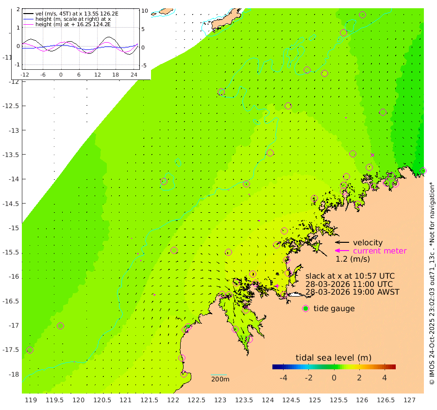 3cm/s 20T +10cm/s rms + 1cm/s 1T. NWSBRW 205m 3cm/s 57T +11cm/s rms + 6cm/s -110T. NWSROW 199m 10cm/s 111T +5cm/s rms + 2cm/s 65T. CAM050 58m 7cm/s 91T +12cm/s rms + 5cm/s 92T. CAM100 99m 3cm/s 76T +7cm/s rms + 1cm/s -85T. KIM400 396m 5cm/s 87T +9cm/s rms + 5cm/s -119T. KIM200 208m 8cm/s 75T +11cm/s rms + 5cm/s -147T. KIM100 99m 13cm/s 57T +8cm/s rms + 3cm/s -103T. KIM050 59m 7cm/s -11T +4cm/s rms + 2cm/s 23T. TIMORS88 91m 49cm Imperieuse Reef 58cm Mermaid Reef 95cm Broome 72cm Cape Baskerville 43cm Red Bluff 83cm Cape Boileau 64cm Scott Reef (WA) 63cm Ashmore Reef 84cm Karrakatta Bay 88cm Sunday Island 62cm Valentine Island 50cm Derby 77cm Port Usborne 89cm Bedford Islands 104cm Yampi Sound (Koolan Island) 154cm Macleay Island 97cm Adele Island 68cm Browse Island 117cm Shale Island 139cm Lizard Island 109cm Hall Point 94cm Degerando Island 93cm White Island 77cm Skua No. 4 Well 88cm Jabiru 89cm Maret Island 74cm Baudin Island 84cm Cape Voltaire (Krait Bay) 67cm Dillon Shoal 60cm Laminaria 84cm Port Warrender 79cm Troughton Island 80cm Cassini Island 71cm West Holothuria Reef Offshore 63cm Jar Island 74cm Lynher Bank 82cm Heywood Shoal 71cm Pee Shoal 55cm Van Cloon Shoal 55cm Carronade Island 64cm Guy Point 65cm Napier Broome Bay 33cm Lesueur Island