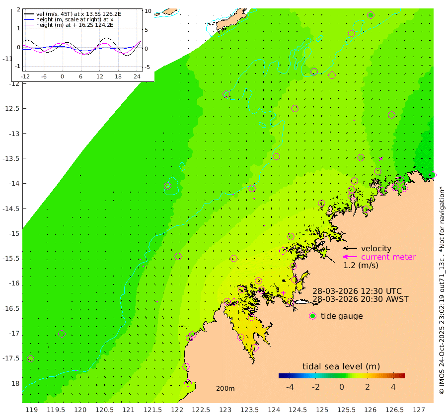 8cm/s -34T +10cm/s rms + 1cm/s 1T. NWSBRW 205m 8cm/s -19T +11cm/s rms + 6cm/s -110T. NWSROW 199m 7cm/s -5T +5cm/s rms + 2cm/s 65T. CAM050 58m 8cm/s -11T +12cm/s rms + 5cm/s 92T. CAM100 99m 3cm/s 0T +7cm/s rms + 1cm/s -85T. KIM400 396m 4cm/s -11T +9cm/s rms + 5cm/s -119T. KIM200 208m 10cm/s -9T +11cm/s rms + 5cm/s -147T. KIM100 99m 12cm/s 3T +8cm/s rms + 3cm/s -103T. KIM050 59m 10cm/s 11T +4cm/s rms + 2cm/s 23T. TIMORS88 91m 58cm Imperieuse Reef 39cm Mermaid Reef 80cm Broome 63cm Cape Baskerville 55cm Red Bluff 74cm Cape Boileau 48cm Scott Reef (WA) 56cm Ashmore Reef 107cm Karrakatta Bay 106cm Sunday Island 128cm Valentine Island 117cm Derby 127cm Port Usborne 106cm Bedford Islands 108cm Yampi Sound (Koolan Island) 169cm Macleay Island 99cm Adele Island 45cm Browse Island 132cm Shale Island 127cm Lizard Island 79cm Hall Point 97cm Degerando Island 75cm White Island 71cm Skua No. 4 Well 65cm Jabiru 81cm Maret Island 60cm Baudin Island 72cm Cape Voltaire (Krait Bay) 67cm Dillon Shoal 37cm Laminaria 75cm Port Warrender 72cm Troughton Island 77cm Cassini Island 59cm West Holothuria Reef Offshore 48cm Jar Island 55cm Lynher Bank 67cm Heywood Shoal 71cm Pee Shoal 47cm Van Cloon Shoal 35cm Carronade Island 40cm Guy Point 43cm Napier Broome Bay 6cm Lesueur Island