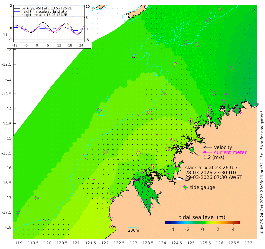 7cm/s 112T +10cm/s rms + 1cm/s 1T. NWSBRW 205m 10cm/s 122T +11cm/s rms + 6cm/s -110T. NWSROW 199m 28cm/s 135T +5cm/s rms + 2cm/s 65T. CAM050 58m 20cm/s 131T +12cm/s rms + 5cm/s 92T. CAM100 99m 7cm/s 104T +7cm/s rms + 1cm/s -85T. KIM400 396m 11cm/s 106T +9cm/s rms + 5cm/s -119T. KIM200 208m 18cm/s 111T +11cm/s rms + 5cm/s -147T. KIM100 99m 22cm/s 93T +8cm/s rms + 3cm/s -103T. KIM050 59m 4cm/s 127T +4cm/s rms + 2cm/s 23T. TIMORS88 91m 1cm Imperieuse Reef 43cm Mermaid Reef 90cm Broome 65cm Cape Baskerville 37cm Red Bluff 48cm Cape Boileau 45cm Scott Reef (WA) 33cm Ashmore Reef 38cm Karrakatta Bay 28cm Sunday Island -30cm Valentine Island -70cm Derby -13cm Port Usborne 71cm Bedford Islands 67cm Yampi Sound (Koolan Island) 129cm Macleay Island 79cm Adele Island 69cm Browse Island 69cm Shale Island 78cm Lizard Island 85cm Hall Point 64cm Degerando Island 67cm White Island 45cm Skua No. 4 Well 30cm Jabiru 69cm Maret Island 50cm Baudin Island 44cm Cape Voltaire (Krait Bay) 6cm Dillon Shoal 38cm Laminaria 30cm Port Warrender 13cm Troughton Island 43cm Cassini Island 26cm West Holothuria Reef Offshore -3cm Jar Island 54cm Lynher Bank 42cm Heywood Shoal 29cm Pee Shoal -15cm Van Cloon Shoal -22cm Carronade Island -19cm Guy Point -29cm Napier Broome Bay -72cm Lesueur Island