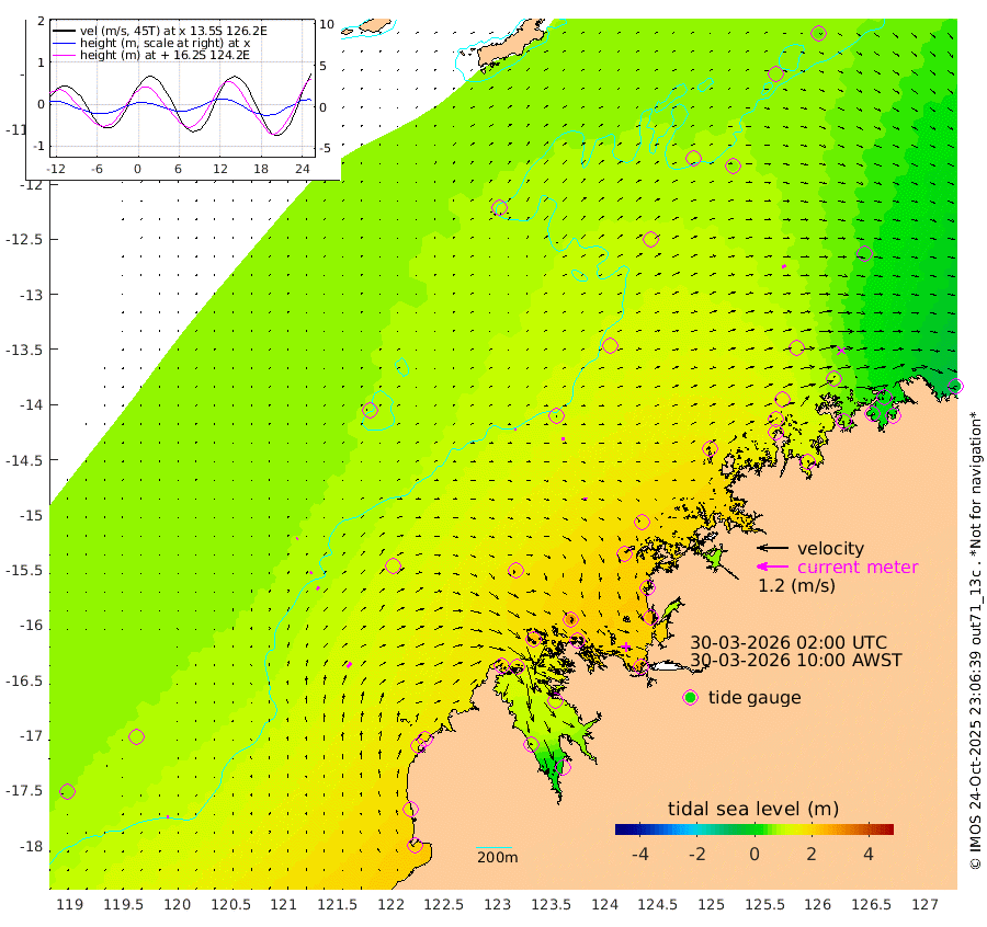 6cm/s -4T +10cm/s rms + 1cm/s 1T. NWSBRW 205m 10cm/s 9T +11cm/s rms + 6cm/s -110T. NWSROW 199m 12cm/s 103T +5cm/s rms + 2cm/s 65T. CAM050 58m 9cm/s 81T +12cm/s rms + 5cm/s 92T. CAM100 99m 4cm/s 53T +7cm/s rms + 1cm/s -85T. KIM400 396m 7cm/s 46T +9cm/s rms + 5cm/s -119T. KIM200 208m 13cm/s 40T +11cm/s rms + 5cm/s -147T. KIM100 99m 24cm/s 38T +8cm/s rms + 3cm/s -103T. KIM050 59m 17cm/s 73T +4cm/s rms + 2cm/s 23T. TIMORS88 91m 75cm Imperieuse Reef 80cm Mermaid Reef 203cm Broome 153cm Cape Baskerville 174cm Red Bluff 142cm Cape Boileau 81cm Scott Reef (WA) 94cm Ashmore Reef 185cm Karrakatta Bay 170cm Sunday Island 98cm Valentine Island 27cm Derby 105cm Port Usborne 228cm Bedford Islands 233cm Yampi Sound (Koolan Island) 289cm Macleay Island 191cm Adele Island 91cm Browse Island 267cm Shale Island 254cm Lizard Island 186cm Hall Point 211cm Degerando Island 179cm White Island 106cm Skua No. 4 Well 75cm Jabiru 171cm Maret Island 139cm Baudin Island 142cm Cape Voltaire (Krait Bay) 64cm Dillon Shoal 59cm Laminaria 148cm Port Warrender 92cm Troughton Island 144cm Cassini Island 94cm West Holothuria Reef Offshore 69cm Jar Island 119cm Lynher Bank 122cm Heywood Shoal 95cm Pee Shoal 44cm Van Cloon Shoal 26cm Carronade Island 24cm Guy Point 25cm Napier Broome Bay -55cm Lesueur Island