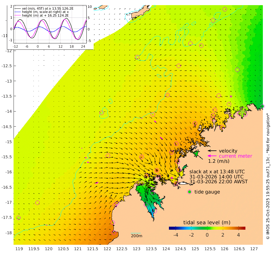 8cm/s 70T +10cm/s rms + 1cm/s 1T. NWSBRW 205m 12cm/s 85T +11cm/s rms + 6cm/s -110T. NWSROW 199m 44cm/s 136T +5cm/s rms + 2cm/s 65T. CAM050 58m 30cm/s 126T +12cm/s rms + 5cm/s 92T. CAM100 99m 9cm/s 81T +7cm/s rms + 1cm/s -85T. KIM400 396m 16cm/s 92T +9cm/s rms + 5cm/s -119T. KIM200 208m 26cm/s 94T +11cm/s rms + 5cm/s -147T. KIM100 99m 45cm/s 65T +8cm/s rms + 3cm/s -103T. KIM050 59m 2cm/s -15T +4cm/s rms + 2cm/s 23T. TIMORS88 91m 82cm Imperieuse Reef 138cm Mermaid Reef 318cm Broome 241cm Cape Baskerville 252cm Red Bluff 246cm Cape Boileau 133cm Scott Reef (WA) 135cm Ashmore Reef 216cm Karrakatta Bay 192cm Sunday Island -38cm Valentine Island -139cm Derby 2cm Port Usborne 272cm Bedford Islands 307cm Yampi Sound (Koolan Island) 371cm Macleay Island 260cm Adele Island 175cm Browse Island 326cm Shale Island 310cm Lizard Island 262cm Hall Point 296cm Degerando Island 283cm White Island 154cm Skua No. 4 Well 99cm Jabiru 258cm Maret Island 228cm Baudin Island 230cm Cape Voltaire (Krait Bay) 103cm Dillon Shoal 93cm Laminaria 244cm Port Warrender 142cm Troughton Island 219cm Cassini Island 161cm West Holothuria Reef Offshore 130cm Jar Island 183cm Lynher Bank 214cm Heywood Shoal 127cm Pee Shoal 80cm Van Cloon Shoal 85cm Carronade Island 93cm Guy Point 94cm Napier Broome Bay -31cm Lesueur Island