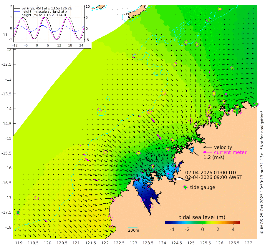 34cm/s 124T +10cm/s rms + 1cm/s 1T. NWSBRW 205m 45cm/s 135T +11cm/s rms + 6cm/s -110T. NWSROW 199m 105cm/s 141T +5cm/s rms + 2cm/s 65T. CAM050 58m 76cm/s 139T +12cm/s rms + 5cm/s 92T. CAM100 99m 16cm/s 114T +7cm/s rms + 1cm/s -85T. KIM400 396m 36cm/s 118T +9cm/s rms + 5cm/s -119T. KIM200 208m 64cm/s 124T +11cm/s rms + 5cm/s -147T. KIM100 99m 72cm/s 105T +8cm/s rms + 3cm/s -103T. KIM050 59m 24cm/s -144T +4cm/s rms + 2cm/s 23T. TIMORS88 91m -33cm Imperieuse Reef 116cm Mermaid Reef 199cm Broome 157cm Cape Baskerville 89cm Red Bluff 143cm Cape Boileau 109cm Scott Reef (WA) 84cm Ashmore Reef -43cm Karrakatta Bay -75cm Sunday Island -363cm Valentine Island -438cm Derby -305cm Port Usborne 25cm Bedford Islands 52cm Yampi Sound (Koolan Island) 109cm Macleay Island 120cm Adele Island 200cm Browse Island -15cm Shale Island -15cm Lizard Island 112cm Hall Point 105cm Degerando Island 145cm White Island 101cm Skua No. 4 Well 62cm Jabiru 162cm Maret Island 147cm Baudin Island 149cm Cape Voltaire (Krait Bay) 43cm Dillon Shoal 96cm Laminaria 136cm Port Warrender 96cm Troughton Island 147cm Cassini Island 121cm West Holothuria Reef Offshore 86cm Jar Island 113cm Lynher Bank 144cm Heywood Shoal 72cm Pee Shoal 48cm Van Cloon Shoal 91cm Carronade Island 99cm Guy Point 88cm Napier Broome Bay 37cm Lesueur Island