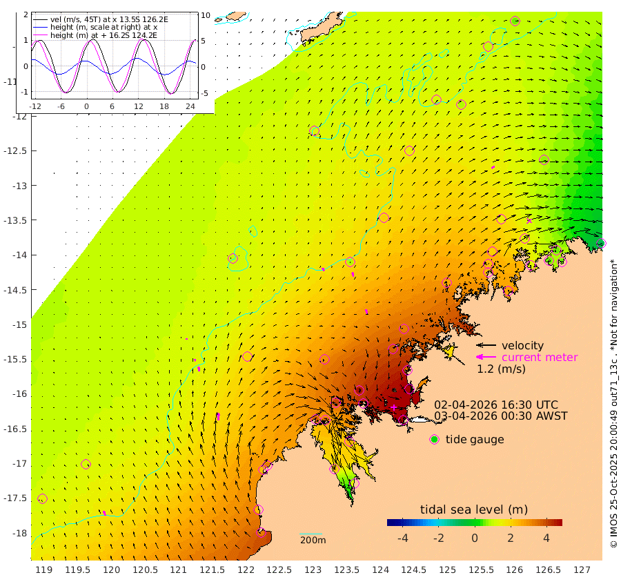 21cm/s -32T +10cm/s rms + 1cm/s 1T. NWSBRW 205m 30cm/s -20T +11cm/s rms + 6cm/s -110T. NWSROW 199m 27cm/s -18T +5cm/s rms + 2cm/s 65T. CAM050 58m 26cm/s -10T +12cm/s rms + 5cm/s 92T. CAM100 99m 8cm/s 1T +7cm/s rms + 1cm/s -85T. KIM400 396m 15cm/s -7T +9cm/s rms + 5cm/s -119T. KIM200 208m 29cm/s -8T +11cm/s rms + 5cm/s -147T. KIM100 99m 46cm/s 0T +8cm/s rms + 3cm/s -103T. KIM050 59m 22cm/s 47T +4cm/s rms + 2cm/s 23T. TIMORS88 91m 149cm Imperieuse Reef 111cm Mermaid Reef 324cm Broome 235cm Cape Baskerville 317cm Red Bluff 237cm Cape Boileau 102cm Scott Reef (WA) 132cm Ashmore Reef 362cm Karrakatta Bay 349cm Sunday Island 235cm Valentine Island 136cm Derby 247cm Port Usborne 395cm Bedford Islands 440cm Yampi Sound (Koolan Island) 458cm Macleay Island 289cm Adele Island 87cm Browse Island 533cm Shale Island 502cm Lizard Island 348cm Hall Point 369cm Degerando Island 326cm White Island 135cm Skua No. 4 Well 87cm Jabiru 257cm Maret Island 231cm Baudin Island 227cm Cape Voltaire (Krait Bay) 104cm Dillon Shoal 57cm Laminaria 265cm Port Warrender 132cm Troughton Island 205cm Cassini Island 141cm West Holothuria Reef Offshore 130cm Jar Island 185cm Lynher Bank 198cm Heywood Shoal 116cm Pee Shoal 69cm Van Cloon Shoal 50cm Carronade Island 53cm Guy Point 51cm Napier Broome Bay -77cm Lesueur Island