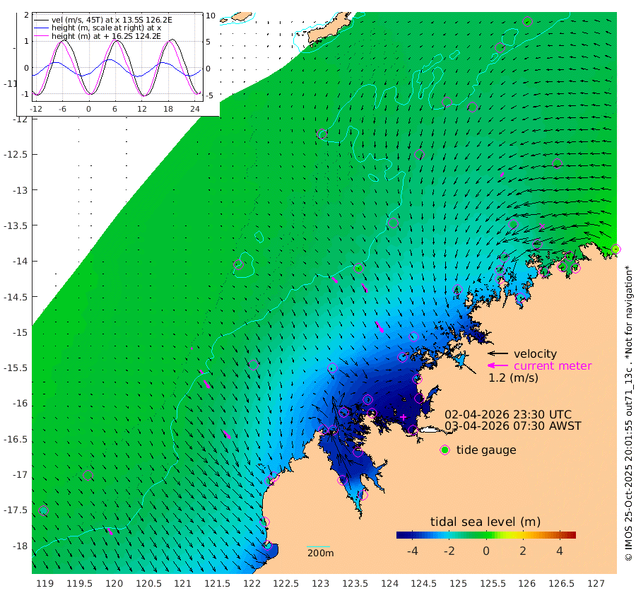 43cm/s 134T +10cm/s rms + 1cm/s 1T. NWSBRW 205m 46cm/s 149T +11cm/s rms + 6cm/s -110T. NWSROW 199m 76cm/s 148T +5cm/s rms + 2cm/s 65T. CAM050 58m 60cm/s 149T +12cm/s rms + 5cm/s 92T. CAM100 99m 12cm/s 145T +7cm/s rms + 1cm/s -85T. KIM400 396m 27cm/s 139T +9cm/s rms + 5cm/s -119T. KIM200 208m 54cm/s 147T +11cm/s rms + 5cm/s -147T. KIM100 99m 60cm/s 140T +8cm/s rms + 3cm/s -103T. KIM050 59m 29cm/s -144T +4cm/s rms + 2cm/s 23T. TIMORS88 91m -145cm Imperieuse Reef -37cm Mermaid Reef -181cm Broome -118cm Cape Baskerville -214cm Red Bluff -129cm Cape Boileau -34cm Scott Reef (WA) -71cm Ashmore Reef -320cm Karrakatta Bay -326cm Sunday Island -391cm Valentine Island -339cm Derby -369cm Port Usborne -321cm Bedford Islands -353cm Yampi Sound (Koolan Island) -344cm Macleay Island -191cm Adele Island 12cm Browse Island -464cm Shale Island -473cm Lizard Island -267cm Hall Point -267cm Degerando Island -212cm White Island -66cm Skua No. 4 Well -60cm Jabiru -145cm Maret Island -120cm Baudin Island -127cm Cape Voltaire (Krait Bay) -60cm Dillon Shoal 4cm Laminaria -170cm Port Warrender -76cm Troughton Island -107cm Cassini Island -64cm West Holothuria Reef Offshore -77cm Jar Island -107cm Lynher Bank -91cm Heywood Shoal -67cm Pee Shoal -42cm Van Cloon Shoal -9cm Carronade Island -2cm Guy Point -15cm Napier Broome Bay 68cm Lesueur Island