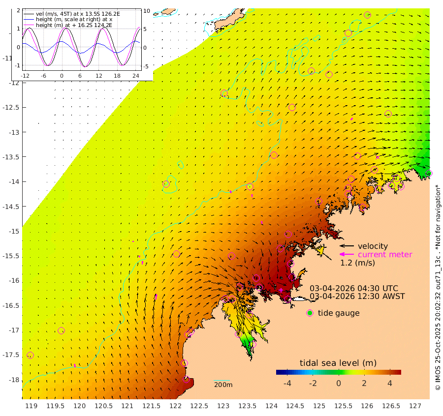 22cm/s -29T +10cm/s rms + 1cm/s 1T. NWSBRW 205m 27cm/s -14T +11cm/s rms + 6cm/s -110T. NWSROW 199m 20cm/s -11T +5cm/s rms + 2cm/s 65T. CAM050 58m 22cm/s 0T +12cm/s rms + 5cm/s 92T. CAM100 99m 8cm/s 10T +7cm/s rms + 1cm/s -85T. KIM400 396m 13cm/s 10T +9cm/s rms + 5cm/s -119T. KIM200 208m 28cm/s 5T +11cm/s rms + 5cm/s -147T. KIM100 99m 46cm/s 6T +8cm/s rms + 3cm/s -103T. KIM050 59m 22cm/s 47T +4cm/s rms + 2cm/s 23T. TIMORS88 91m 172cm Imperieuse Reef 143cm Mermaid Reef 375cm Broome 268cm Cape Baskerville 325cm Red Bluff 269cm Cape Boileau 135cm Scott Reef (WA) 170cm Ashmore Reef 371cm Karrakatta Bay 359cm Sunday Island 226cm Valentine Island 125cm Derby 252cm Port Usborne 419cm Bedford Islands 485cm Yampi Sound (Koolan Island) 506cm Macleay Island 332cm Adele Island 137cm Browse Island 571cm Shale Island 567cm Lizard Island 423cm Hall Point 417cm Degerando Island 380cm White Island 174cm Skua No. 4 Well 149cm Jabiru 312cm Maret Island 275cm Baudin Island 289cm Cape Voltaire (Krait Bay) 135cm Dillon Shoal 87cm Laminaria 332cm Port Warrender 202cm Troughton Island 266cm Cassini Island 195cm West Holothuria Reef Offshore 192cm Jar Island 228cm Lynher Bank 237cm Heywood Shoal 159cm Pee Shoal 120cm Van Cloon Shoal 118cm Carronade Island 117cm Guy Point 120cm Napier Broome Bay 4cm Lesueur Island