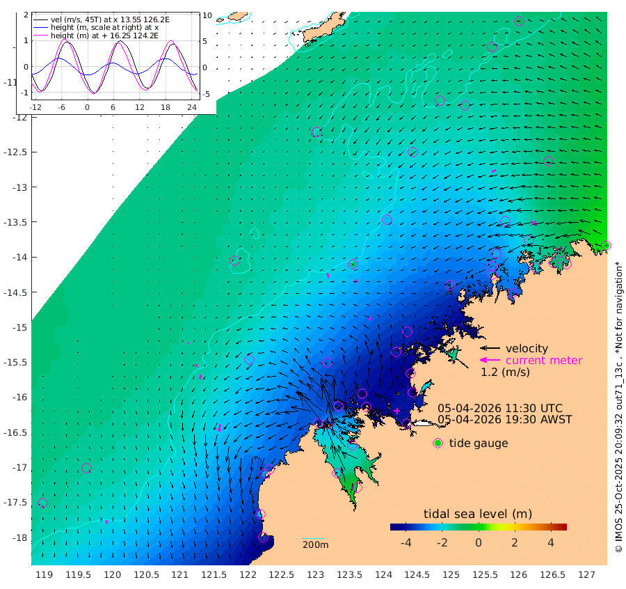 26cm/s 152T +10cm/s rms + 1cm/s 1T. NWSBRW 205m 21cm/s 166T +11cm/s rms + 6cm/s -110T. NWSROW 199m 20cm/s -169T +5cm/s rms + 2cm/s 65T. CAM050 58m 23cm/s -165T +12cm/s rms + 5cm/s 92T. CAM100 99m 7cm/s -158T +7cm/s rms + 1cm/s -85T. KIM400 396m 12cm/s -164T +9cm/s rms + 5cm/s -119T. KIM200 208m 25cm/s -169T +11cm/s rms + 5cm/s -147T. KIM100 99m 44cm/s -172T +8cm/s rms + 3cm/s -103T. KIM050 59m 25cm/s -118T +4cm/s rms + 2cm/s 23T. TIMORS88 91m -156cm Imperieuse Reef -142cm Mermaid Reef -352cm Broome -260cm Cape Baskerville -332cm Red Bluff -251cm Cape Boileau -126cm Scott Reef (WA) -163cm Ashmore Reef -363cm Karrakatta Bay -346cm Sunday Island -204cm Valentine Island -99cm Derby -218cm Port Usborne -390cm Bedford Islands -457cm Yampi Sound (Koolan Island) -459cm Macleay Island -306cm Adele Island -112cm Browse Island -544cm Shale Island -512cm Lizard Island -441cm Hall Point -383cm Degerando Island -362cm White Island -160cm Skua No. 4 Well -135cm Jabiru -287cm Maret Island -274cm Baudin Island -260cm Cape Voltaire (Krait Bay) -131cm Dillon Shoal -99cm Laminaria -301cm Port Warrender -177cm Troughton Island -240cm Cassini Island -183cm West Holothuria Reef Offshore -177cm Jar Island -212cm Lynher Bank -229cm Heywood Shoal -142cm Pee Shoal -107cm Van Cloon Shoal -101cm Carronade Island -105cm Guy Point -97cm Napier Broome Bay 7cm Lesueur Island