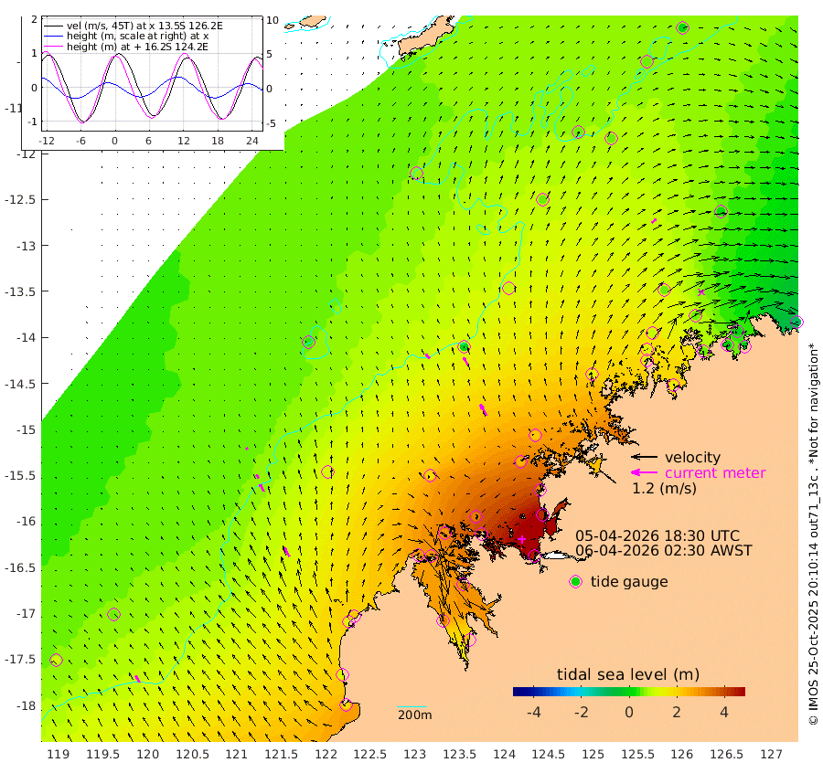 28cm/s -42T +10cm/s rms + 1cm/s 1T. NWSBRW 205m 37cm/s -31T +11cm/s rms + 6cm/s -110T. NWSROW 199m 58cm/s -30T +5cm/s rms + 2cm/s 65T. CAM050 58m 45cm/s -26T +12cm/s rms + 5cm/s 92T. CAM100 99m 9cm/s -25T +7cm/s rms + 1cm/s -85T. KIM400 396m 20cm/s -32T +9cm/s rms + 5cm/s -119T. KIM200 208m 39cm/s -30T +11cm/s rms + 5cm/s -147T. KIM100 99m 49cm/s -30T +8cm/s rms + 3cm/s -103T. KIM050 59m 26cm/s 49T +4cm/s rms + 2cm/s 23T. TIMORS88 91m 118cm Imperieuse Reef 48cm Mermaid Reef 184cm Broome 122cm Cape Baskerville 214cm Red Bluff 118cm Cape Boileau 38cm Scott Reef (WA) 68cm Ashmore Reef 293cm Karrakatta Bay 293cm Sunday Island 317cm Valentine Island 255cm Derby 301cm Port Usborne 290cm Bedford Islands 334cm Yampi Sound (Koolan Island) 326cm Macleay Island 182cm Adele Island -5cm Browse Island 438cm Shale Island 432cm Lizard Island 312cm Hall Point 245cm Degerando Island 215cm White Island 59cm Skua No. 4 Well 46cm Jabiru 139cm Maret Island 125cm Baudin Island 115cm Cape Voltaire (Krait Bay) 50cm Dillon Shoal 14cm Laminaria 151cm Port Warrender 51cm Troughton Island 92cm Cassini Island 59cm West Holothuria Reef Offshore 59cm Jar Island 107cm Lynher Bank 94cm Heywood Shoal 52cm Pee Shoal 17cm Van Cloon Shoal -11cm Carronade Island -11cm Guy Point -17cm Napier Broome Bay -102cm Lesueur Island