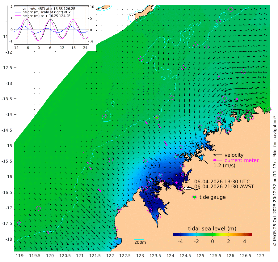 39cm/s 136T +10cm/s rms + 1cm/s 1T. NWSBRW 205m 39cm/s 146T +11cm/s rms + 6cm/s -110T. NWSROW 199m 77cm/s 151T +5cm/s rms + 2cm/s 65T. CAM050 58m 59cm/s 153T +12cm/s rms + 5cm/s 92T. CAM100 99m 10cm/s 144T +7cm/s rms + 1cm/s -85T. KIM400 396m 24cm/s 136T +9cm/s rms + 5cm/s -119T. KIM200 208m 47cm/s 143T +11cm/s rms + 5cm/s -147T. KIM100 99m 56cm/s 132T +8cm/s rms + 3cm/s -103T. KIM050 59m 37cm/s -127T +4cm/s rms + 2cm/s 23T. TIMORS88 91m -131cm Imperieuse Reef -35cm Mermaid Reef -99cm Broome -71cm Cape Baskerville -136cm Red Bluff -69cm Cape Boileau -32cm Scott Reef (WA) -71cm Ashmore Reef -263cm Karrakatta Bay -285cm Sunday Island -409cm Valentine Island -397cm Derby -374cm Port Usborne -234cm Bedford Islands -264cm Yampi Sound (Koolan Island) -251cm Macleay Island -137cm Adele Island 42cm Browse Island -360cm Shale Island -349cm Lizard Island -276cm Hall Point -178cm Degerando Island -152cm White Island -59cm Skua No. 4 Well -96cm Jabiru -91cm Maret Island -94cm Baudin Island -82cm Cape Voltaire (Krait Bay) -84cm Dillon Shoal -37cm Laminaria -120cm Port Warrender -83cm Troughton Island -72cm Cassini Island -66cm West Holothuria Reef Offshore -80cm Jar Island -83cm Lynher Bank -68cm Heywood Shoal -71cm Pee Shoal -64cm Van Cloon Shoal -35cm Carronade Island -38cm Guy Point -31cm Napier Broome Bay -16cm Lesueur Island