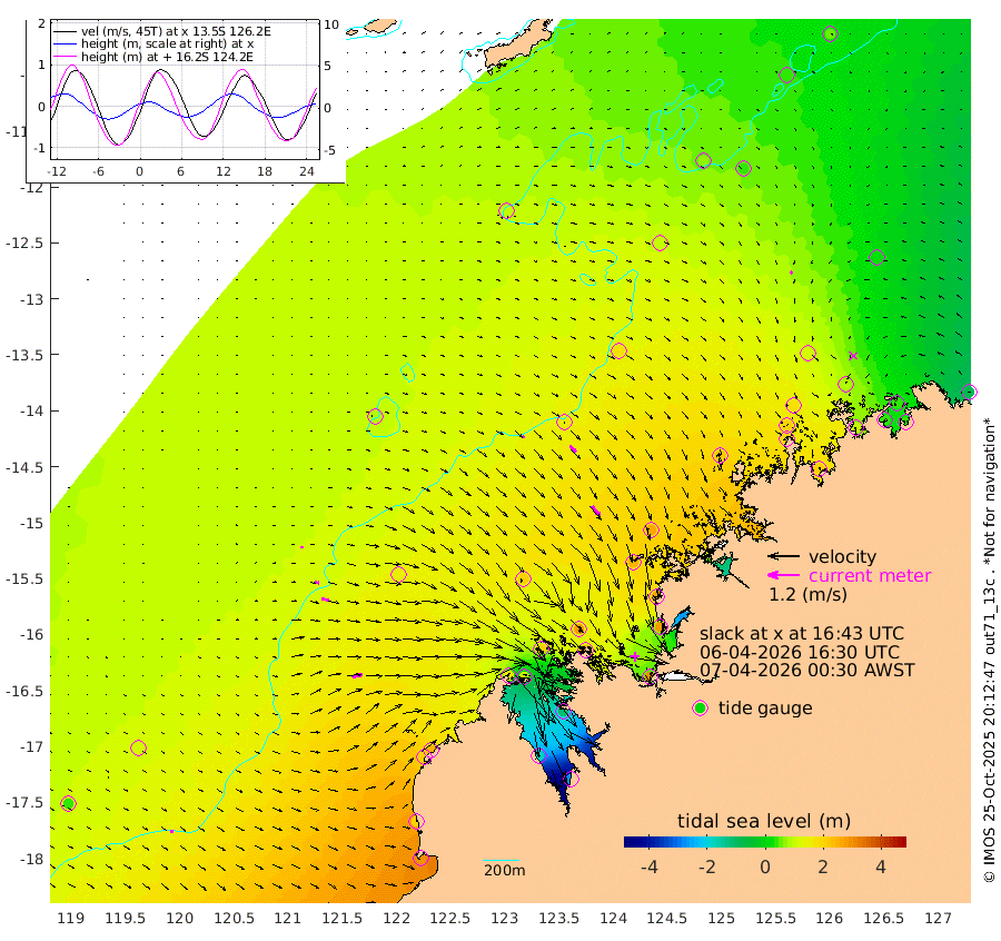 5cm/s 74T +10cm/s rms + 1cm/s 1T. NWSBRW 205m 13cm/s 103T +11cm/s rms + 6cm/s -110T. NWSROW 199m 48cm/s 142T +5cm/s rms + 2cm/s 65T. CAM050 58m 32cm/s 133T +12cm/s rms + 5cm/s 92T. CAM100 99m 9cm/s 90T +7cm/s rms + 1cm/s -85T. KIM400 396m 17cm/s 99T +9cm/s rms + 5cm/s -119T. KIM200 208m 28cm/s 102T +11cm/s rms + 5cm/s -147T. KIM100 99m 41cm/s 70T +8cm/s rms + 3cm/s -103T. KIM050 59m 11cm/s -129T +4cm/s rms + 2cm/s 23T. TIMORS88 91m 39cm Imperieuse Reef 108cm Mermaid Reef 295cm Broome 206cm Cape Baskerville 245cm Red Bluff 199cm Cape Boileau 90cm Scott Reef (WA) 93cm Ashmore Reef 155cm Karrakatta Bay 103cm Sunday Island -167cm Valentine Island -281cm Derby -116cm Port Usborne 203cm Bedford Islands 265cm Yampi Sound (Koolan Island) 271cm Macleay Island 198cm Adele Island 152cm Browse Island 285cm Shale Island 280cm Lizard Island 261cm Hall Point 253cm Degerando Island 258cm White Island 98cm Skua No. 4 Well 31cm Jabiru 219cm Maret Island 196cm Baudin Island 195cm Cape Voltaire (Krait Bay) 34cm Dillon Shoal 45cm Laminaria 201cm Port Warrender 82cm Troughton Island 175cm Cassini Island 113cm West Holothuria Reef Offshore 96cm Jar Island 142cm Lynher Bank 169cm Heywood Shoal 61cm Pee Shoal 24cm Van Cloon Shoal 43cm Carronade Island 40cm Guy Point 42cm Napier Broome Bay -81cm Lesueur Island