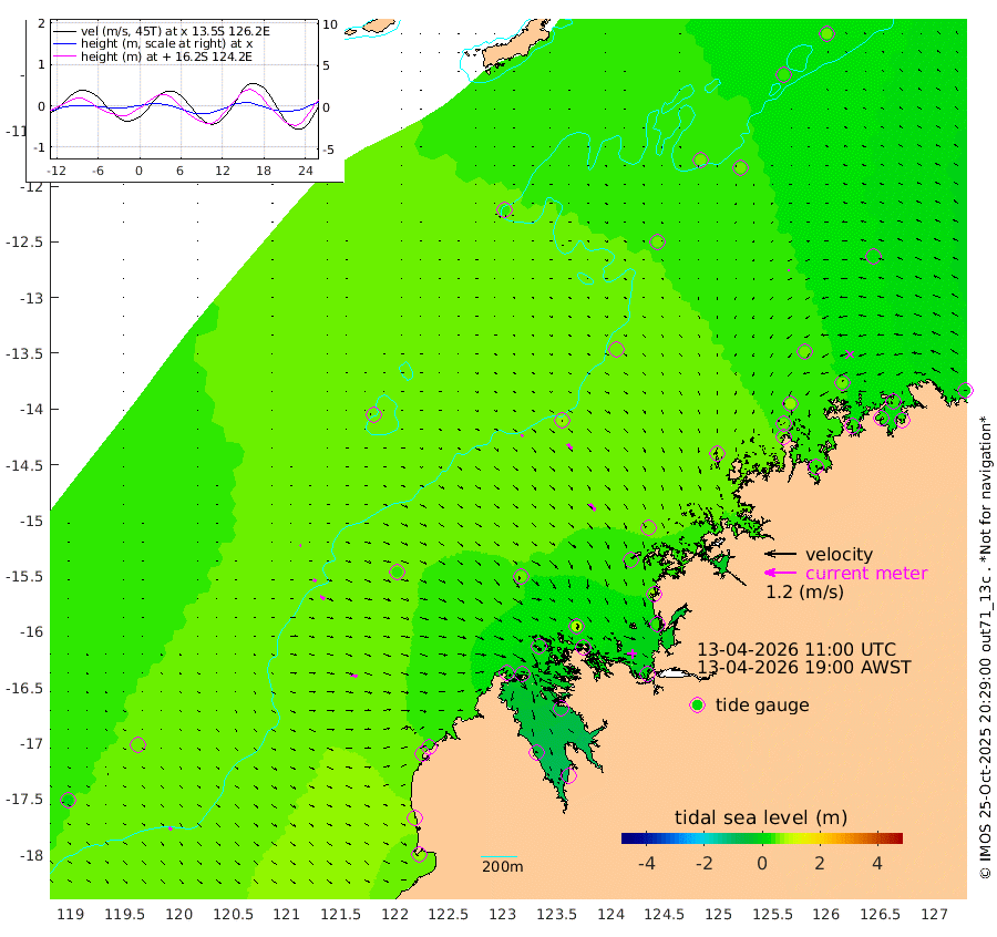 10cm/s 124T +10cm/s rms + 1cm/s 1T. NWSBRW 205m 13cm/s 136T +11cm/s rms + 6cm/s -110T. NWSROW 199m 32cm/s 139T +5cm/s rms + 2cm/s 65T. CAM050 58m 23cm/s 137T +12cm/s rms + 5cm/s 92T. CAM100 99m 6cm/s 109T +7cm/s rms + 1cm/s -85T. KIM400 396m 11cm/s 118T +9cm/s rms + 5cm/s -119T. KIM200 208m 19cm/s 122T +11cm/s rms + 5cm/s -147T. KIM100 99m 24cm/s 102T +8cm/s rms + 3cm/s -103T. KIM050 59m 7cm/s -88T +4cm/s rms + 2cm/s 23T. TIMORS88 91m 7cm Imperieuse Reef 45cm Mermaid Reef 70cm Broome 57cm Cape Baskerville 33cm Red Bluff 61cm Cape Boileau 47cm Scott Reef (WA) 41cm Ashmore Reef 17cm Karrakatta Bay -7cm Sunday Island -58cm Valentine Island -91cm Derby -53cm Port Usborne 12cm Bedford Islands 30cm Yampi Sound (Koolan Island) 75cm Macleay Island 55cm Adele Island 75cm Browse Island 24cm Shale Island 45cm Lizard Island 68cm Hall Point 39cm Degerando Island 52cm White Island 57cm Skua No. 4 Well 53cm Jabiru 62cm Maret Island 53cm Baudin Island 56cm Cape Voltaire (Krait Bay) 35cm Dillon Shoal 46cm Laminaria 44cm Port Warrender 48cm Troughton Island 60cm Cassini Island 50cm West Holothuria Reef Offshore 38cm Jar Island 40cm Lynher Bank 60cm Heywood Shoal 45cm Pee Shoal 30cm Van Cloon Shoal 34cm Carronade Island 39cm Guy Point 44cm Napier Broome Bay 10cm Lesueur Island