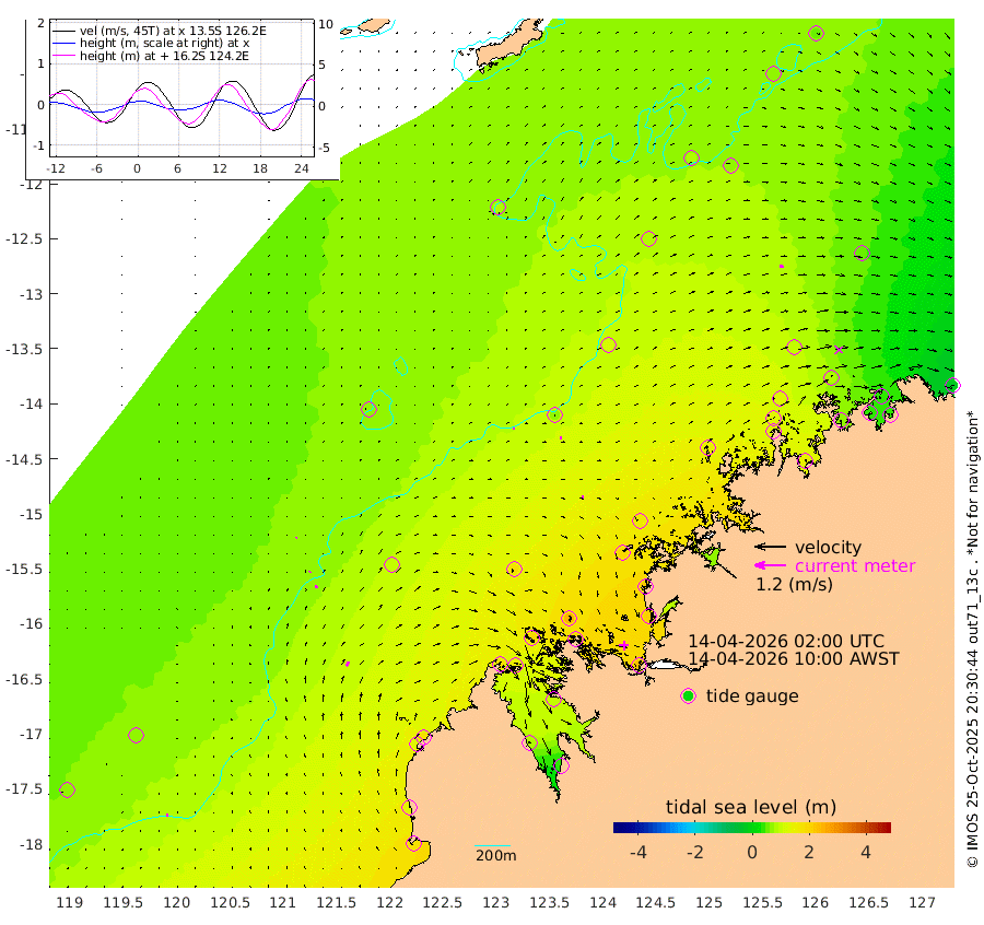 5cm/s 0T +10cm/s rms + 1cm/s 1T. NWSBRW 205m 10cm/s 3T +11cm/s rms + 6cm/s -110T. NWSROW 199m 6cm/s 83T +5cm/s rms + 2cm/s 65T. CAM050 58m 7cm/s 66T +12cm/s rms + 5cm/s 92T. CAM100 99m 4cm/s 39T +7cm/s rms + 1cm/s -85T. KIM400 396m 5cm/s 37T +9cm/s rms + 5cm/s -119T. KIM200 208m 11cm/s 24T +11cm/s rms + 5cm/s -147T. KIM100 99m 20cm/s 29T +8cm/s rms + 3cm/s -103T. KIM050 59m 15cm/s 77T +4cm/s rms + 2cm/s 23T. TIMORS88 91m 66cm Imperieuse Reef 67cm Mermaid Reef 170cm Broome 126cm Cape Baskerville 166cm Red Bluff 120cm Cape Boileau 65cm Scott Reef (WA) 85cm Ashmore Reef 166cm Karrakatta Bay 158cm Sunday Island 87cm Valentine Island 44cm Derby 97cm Port Usborne 182cm Bedford Islands 208cm Yampi Sound (Koolan Island) 251cm Macleay Island 169cm Adele Island 71cm Browse Island 237cm Shale Island 207cm Lizard Island 211cm Hall Point 181cm Degerando Island 164cm White Island 87cm Skua No. 4 Well 66cm Jabiru 146cm Maret Island 128cm Baudin Island 124cm Cape Voltaire (Krait Bay) 71cm Dillon Shoal 50cm Laminaria 137cm Port Warrender 86cm Troughton Island 130cm Cassini Island 95cm West Holothuria Reef Offshore 74cm Jar Island 97cm Lynher Bank 107cm Heywood Shoal 83cm Pee Shoal 52cm Van Cloon Shoal 40cm Carronade Island 36cm Guy Point 39cm Napier Broome Bay -29cm Lesueur Island