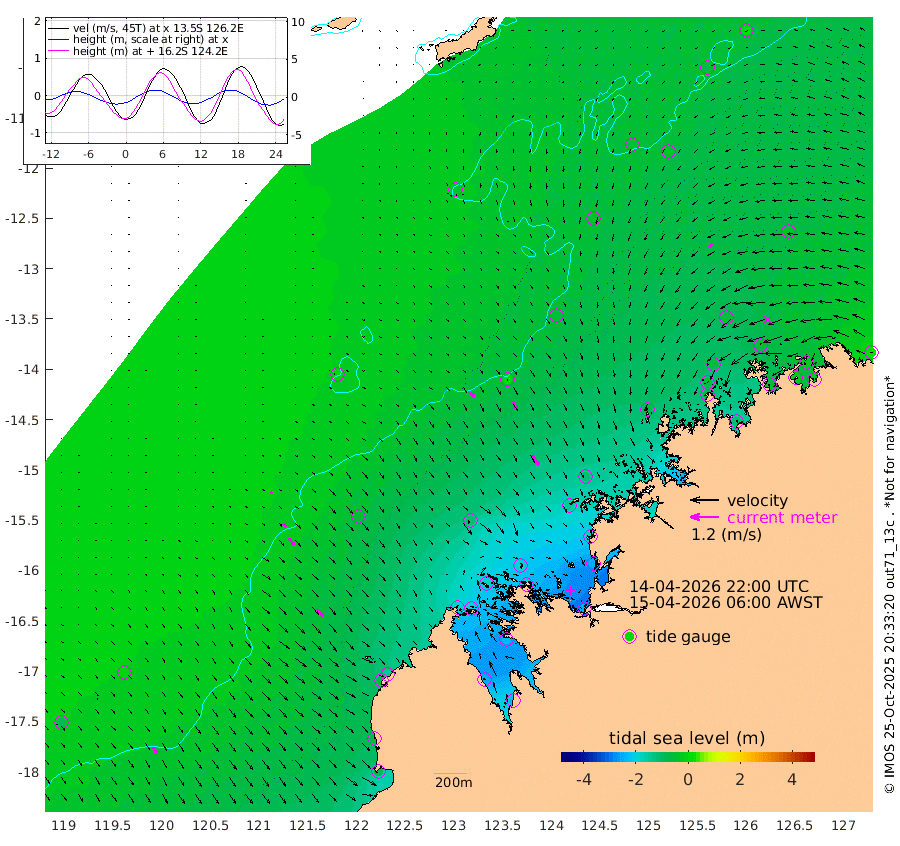 25cm/s 133T +10cm/s rms + 1cm/s 1T. NWSBRW 205m 30cm/s 146T +11cm/s rms + 6cm/s -110T. NWSROW 199m 52cm/s 148T +5cm/s rms + 2cm/s 65T. CAM050 58m 40cm/s 149T +12cm/s rms + 5cm/s 92T. CAM100 99m 9cm/s 137T +7cm/s rms + 1cm/s -85T. KIM400 396m 19cm/s 133T +9cm/s rms + 5cm/s -119T. KIM200 208m 37cm/s 142T +11cm/s rms + 5cm/s -147T. KIM100 99m 39cm/s 135T +8cm/s rms + 3cm/s -103T. KIM050 59m 20cm/s -133T +4cm/s rms + 2cm/s 23T. TIMORS88 91m -88cm Imperieuse Reef -12cm Mermaid Reef -84cm Broome -57cm Cape Baskerville -143cm Red Bluff -74cm Cape Boileau -12cm Scott Reef (WA) -40cm Ashmore Reef -185cm Karrakatta Bay -196cm Sunday Island -255cm Valentine Island -237cm Derby -226cm Port Usborne -168cm Bedford Islands -194cm Yampi Sound (Koolan Island) -184cm Macleay Island -106cm Adele Island 27cm Browse Island -252cm Shale Island -250cm Lizard Island -178cm Hall Point -145cm Degerando Island -111cm White Island -34cm Skua No. 4 Well -41cm Jabiru -73cm Maret Island -59cm Baudin Island -69cm Cape Voltaire (Krait Bay) -53cm Dillon Shoal 6cm Laminaria -105cm Port Warrender -48cm Troughton Island -63cm Cassini Island -45cm West Holothuria Reef Offshore -51cm Jar Island -48cm Lynher Bank -56cm Heywood Shoal -46cm Pee Shoal -42cm Van Cloon Shoal -20cm Carronade Island -16cm Guy Point -30cm Napier Broome Bay 24cm Lesueur Island
