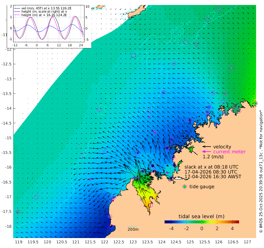 12cm/s -89T +10cm/s rms + 1cm/s 1T. NWSBRW 205m 14cm/s -85T +11cm/s rms + 6cm/s -110T. NWSROW 199m 57cm/s -49T +5cm/s rms + 2cm/s 65T. CAM050 58m 41cm/s -61T +12cm/s rms + 5cm/s 92T. CAM100 99m 11cm/s -101T +7cm/s rms + 1cm/s -85T. KIM400 396m 21cm/s -91T +9cm/s rms + 5cm/s -119T. KIM200 208m 36cm/s -87T +11cm/s rms + 5cm/s -147T. KIM100 99m 57cm/s -116T +8cm/s rms + 3cm/s -103T. KIM050 59m 7cm/s -62T +4cm/s rms + 2cm/s 23T. TIMORS88 91m -111cm Imperieuse Reef -183cm Mermaid Reef -407cm Broome -309cm Cape Baskerville -321cm Red Bluff -294cm Cape Boileau -171cm Scott Reef (WA) -187cm Ashmore Reef -271cm Karrakatta Bay -217cm Sunday Island 57cm Valentine Island 196cm Derby 11cm Port Usborne -338cm Bedford Islands -388cm Yampi Sound (Koolan Island) -444cm Macleay Island -322cm Adele Island -218cm Browse Island -420cm Shale Island -390cm Lizard Island -313cm Hall Point -370cm Degerando Island -356cm White Island -208cm Skua No. 4 Well -128cm Jabiru -337cm Maret Island -301cm Baudin Island -301cm Cape Voltaire (Krait Bay) -132cm Dillon Shoal -137cm Laminaria -307cm Port Warrender -200cm Troughton Island -294cm Cassini Island -211cm West Holothuria Reef Offshore -180cm Jar Island -231cm Lynher Bank -278cm Heywood Shoal -171cm Pee Shoal -106cm Van Cloon Shoal -116cm Carronade Island -123cm Guy Point -114cm Napier Broome Bay 18cm Lesueur Island
