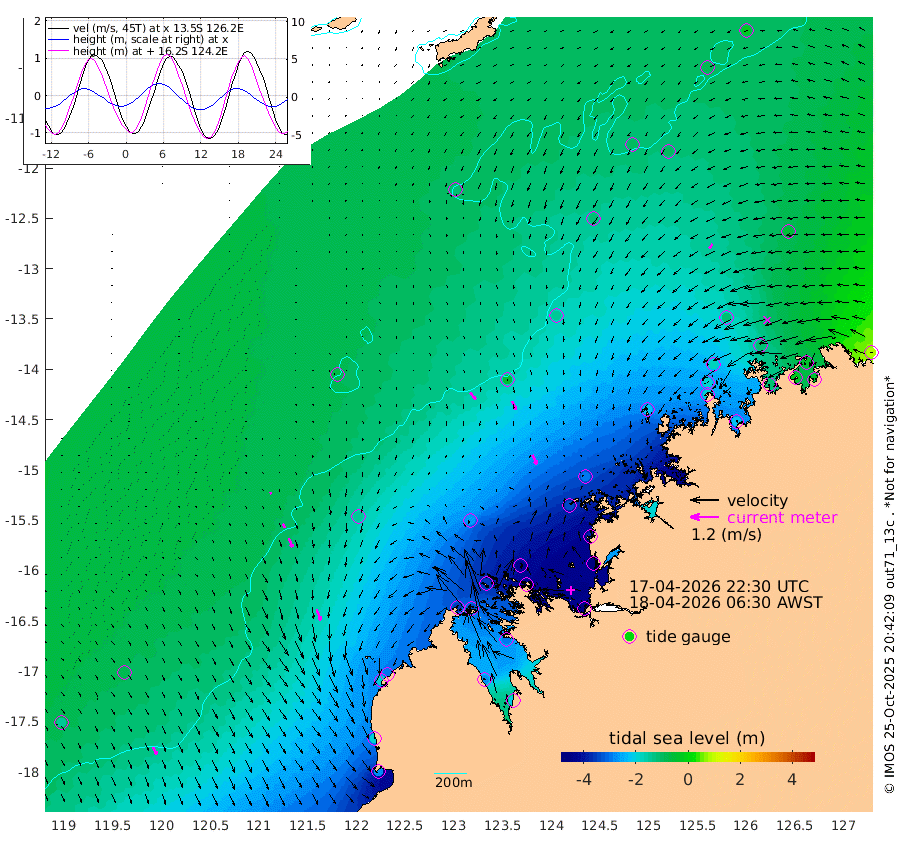37cm/s 140T +10cm/s rms + 1cm/s 1T. NWSBRW 205m 35cm/s 153T +11cm/s rms + 6cm/s -110T. NWSROW 199m 45cm/s 154T +5cm/s rms + 2cm/s 65T. CAM050 58m 39cm/s 157T +12cm/s rms + 5cm/s 92T. CAM100 99m 9cm/s 162T +7cm/s rms + 1cm/s -85T. KIM400 396m 19cm/s 154T +9cm/s rms + 5cm/s -119T. KIM200 208m 41cm/s 159T +11cm/s rms + 5cm/s -147T. KIM100 99m 49cm/s 159T +8cm/s rms + 3cm/s -103T. KIM050 59m 23cm/s -143T +4cm/s rms + 2cm/s 23T. TIMORS88 91m -147cm Imperieuse Reef -75cm Mermaid Reef -278cm Broome -186cm Cape Baskerville -286cm Red Bluff -194cm Cape Boileau -68cm Scott Reef (WA) -109cm Ashmore Reef -356cm Karrakatta Bay -333cm Sunday Island -274cm Valentine Island -204cm Derby -290cm Port Usborne -357cm Bedford Islands -417cm Yampi Sound (Koolan Island) -431cm Macleay Island -258cm Adele Island -58cm Browse Island -525cm Shale Island -503cm Lizard Island -381cm Hall Point -336cm Degerando Island -287cm White Island -108cm Skua No. 4 Well -91cm Jabiru -220cm Maret Island -192cm Baudin Island -192cm Cape Voltaire (Krait Bay) -85cm Dillon Shoal -20cm Laminaria -222cm Port Warrender -109cm Troughton Island -178cm Cassini Island -112cm West Holothuria Reef Offshore -113cm Jar Island -146cm Lynher Bank -150cm Heywood Shoal -94cm Pee Shoal -56cm Van Cloon Shoal -30cm Carronade Island -20cm Guy Point -37cm Napier Broome Bay 88cm Lesueur Island