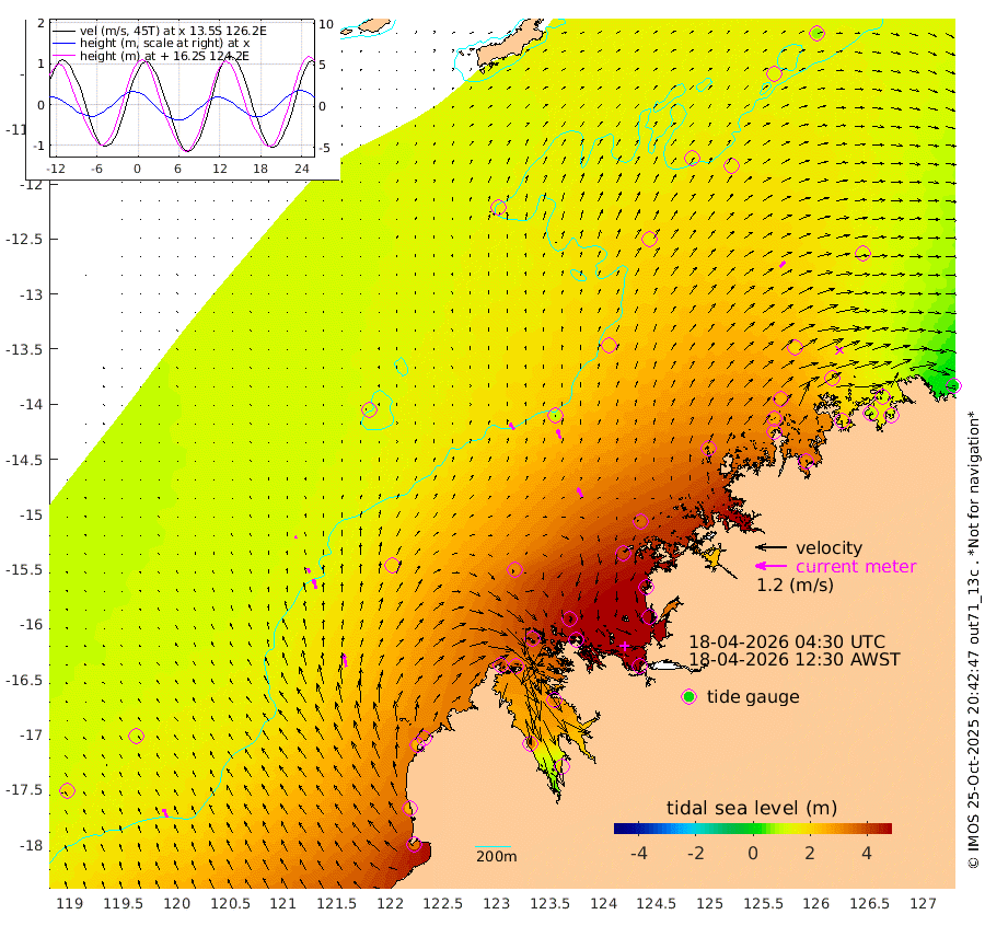 31cm/s -36T +10cm/s rms + 1cm/s 1T. NWSBRW 205m 36cm/s -22T +11cm/s rms + 6cm/s -110T. NWSROW 199m 42cm/s -27T +5cm/s rms + 2cm/s 65T. CAM050 58m 36cm/s -18T +12cm/s rms + 5cm/s 92T. CAM100 99m 10cm/s -13T +7cm/s rms + 1cm/s -85T. KIM400 396m 18cm/s -18T +9cm/s rms + 5cm/s -119T. KIM200 208m 38cm/s -15T +11cm/s rms + 5cm/s -147T. KIM100 99m 52cm/s -13T +8cm/s rms + 3cm/s -103T. KIM050 59m 26cm/s 41T +4cm/s rms + 2cm/s 23T. TIMORS88 91m 187cm Imperieuse Reef 118cm Mermaid Reef 338cm Broome 244cm Cape Baskerville 320cm Red Bluff 241cm Cape Boileau 110cm Scott Reef (WA) 165cm Ashmore Reef 405cm Karrakatta Bay 373cm Sunday Island 323cm Valentine Island 227cm Derby 324cm Port Usborne 414cm Bedford Islands 478cm Yampi Sound (Koolan Island) 497cm Macleay Island 314cm Adele Island 102cm Browse Island 589cm Shale Island 561cm Lizard Island 439cm Hall Point 397cm Degerando Island 349cm White Island 165cm Skua No. 4 Well 152cm Jabiru 290cm Maret Island 265cm Baudin Island 262cm Cape Voltaire (Krait Bay) 135cm Dillon Shoal 68cm Laminaria 302cm Port Warrender 202cm Troughton Island 255cm Cassini Island 181cm West Holothuria Reef Offshore 190cm Jar Island 197cm Lynher Bank 205cm Heywood Shoal 155cm Pee Shoal 121cm Van Cloon Shoal 106cm Carronade Island 98cm Guy Point 108cm Napier Broome Bay 12cm Lesueur Island