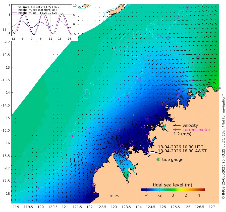 31cm/s 150T +10cm/s rms + 1cm/s 1T. NWSBRW 205m 28cm/s 161T +11cm/s rms + 6cm/s -110T. NWSROW 199m 30cm/s 178T +5cm/s rms + 2cm/s 65T. CAM050 58m 30cm/s -175T +12cm/s rms + 5cm/s 92T. CAM100 99m 9cm/s -172T +7cm/s rms + 1cm/s -85T. KIM400 396m 16cm/s -178T +9cm/s rms + 5cm/s -119T. KIM200 208m 33cm/s -179T +11cm/s rms + 5cm/s -147T. KIM100 99m 51cm/s -180T +8cm/s rms + 3cm/s -103T. KIM050 59m 31cm/s -120T +4cm/s rms + 2cm/s 23T. TIMORS88 91m -194cm Imperieuse Reef -153cm Mermaid Reef -381cm Broome -282cm Cape Baskerville -359cm Red Bluff -272cm Cape Boileau -142cm Scott Reef (WA) -193cm Ashmore Reef -421cm Karrakatta Bay -388cm Sunday Island -287cm Valentine Island -178cm Derby -298cm Port Usborne -444cm Bedford Islands -507cm Yampi Sound (Koolan Island) -526cm Macleay Island -346cm Adele Island -119cm Browse Island -616cm Shale Island -580cm Lizard Island -440cm Hall Point -426cm Degerando Island -380cm White Island -198cm Skua No. 4 Well -160cm Jabiru -325cm Maret Island -293cm Baudin Island -293cm Cape Voltaire (Krait Bay) -161cm Dillon Shoal -113cm Laminaria -325cm Port Warrender -215cm Troughton Island -282cm Cassini Island -203cm West Holothuria Reef Offshore -198cm Jar Island -228cm Lynher Bank -257cm Heywood Shoal -182cm Pee Shoal -128cm Van Cloon Shoal -111cm Carronade Island -112cm Guy Point -108cm Napier Broome Bay 9cm Lesueur Island